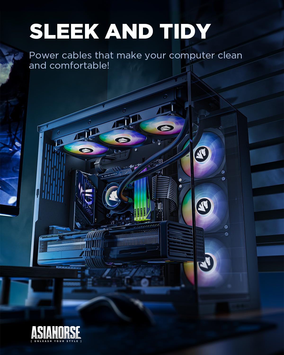 - 【Lieferumfang】1x24 Pin ATX-Verlängerungskabel (für Mainboard), 1x(4+4) Pin EPS-Kabel (für CPU), 2x(6+2) Pin PCI-e-Kabel (für GPU), jedes Kabel hat 4 Kämme und das AsiaHorse PC kabel sind alle 30cm lang. Mit diesem kostensparenden Computerkabel, das ein komplettes Sortiment an GPU Kabel enthält, ist Ihr Mainframe immer sauber und ordentlich.