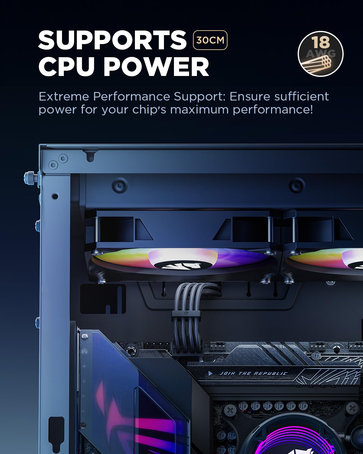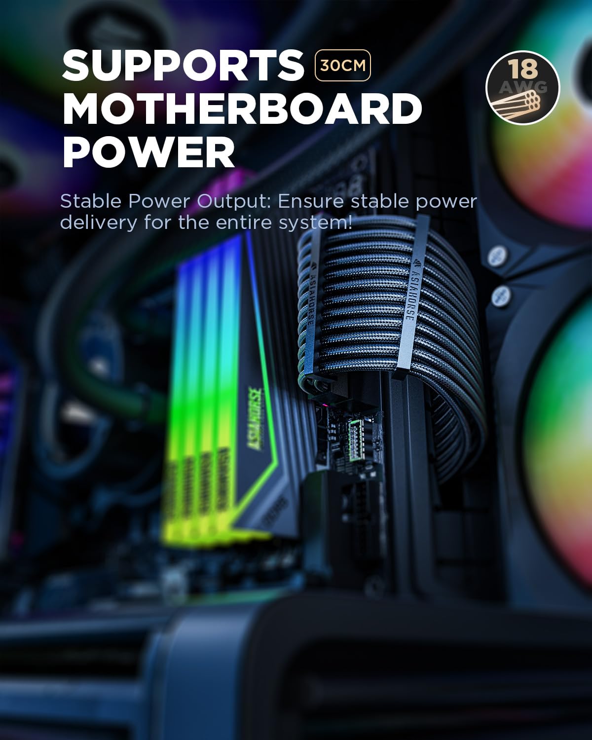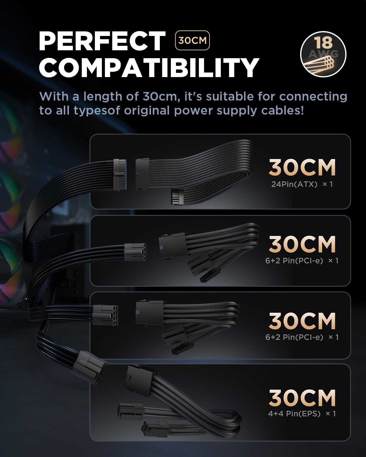 - 【Hochwertiger Kerndraht】Die PSU Kabelverlängerung verwendet im Inneren einen hochleitfähigen reinen Kupferkern nach UL1015 18AWG, der eine hohe Stromübertragung und schnelle Übertragungsgeschwindigkeiten ermöglicht. PSU sleeved cable kit kann Ihr Ultra-Hochleistungs-Netzteil problemlos und ohne Stress handhaben.