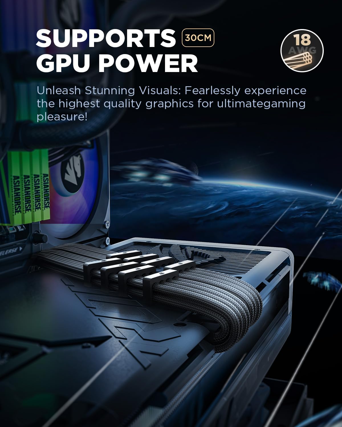 - 【Verabschieden Sie sich von der Unordnung】Das PC-Stromverlängerungskabel ist aus extrem weichem Material gefertigt und wird in einer Verpackung mit einem zweifarbigen Kabelkamm geliefert, der für eine flexible Anordnung und einfache Organisation sorgt und es Ihnen ermöglicht, die PC Netzteil Kabel in jedem Winkel zu befestigen. Sleeved GPU cable ist mit dem neuesten Nylongeflecht ausgestattet, das stilvoll und ästhetisch ansprechend ist und das grafikkarte Kabel an seinem Platz hält.