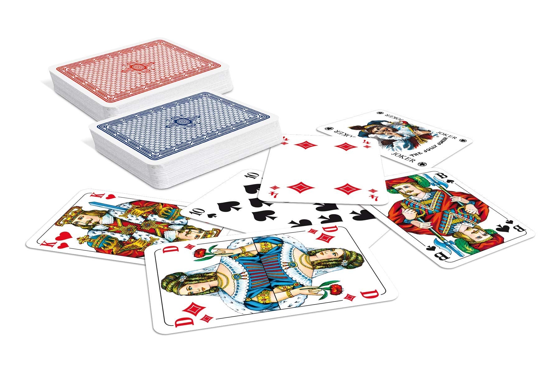 Romme - Canasta - Bridge - Skat - Mau Mau - Poker... die beliebtesten Kartenspiele der Welt sind mit diesem Spielkartenset spielbar: Verpackt in einem hochwertigen Kunstlederetui mit Goldaufdruck bieten die 2 x 55 Blatt unzählige Möglichkeiten für einen spannenden Spieleabend.