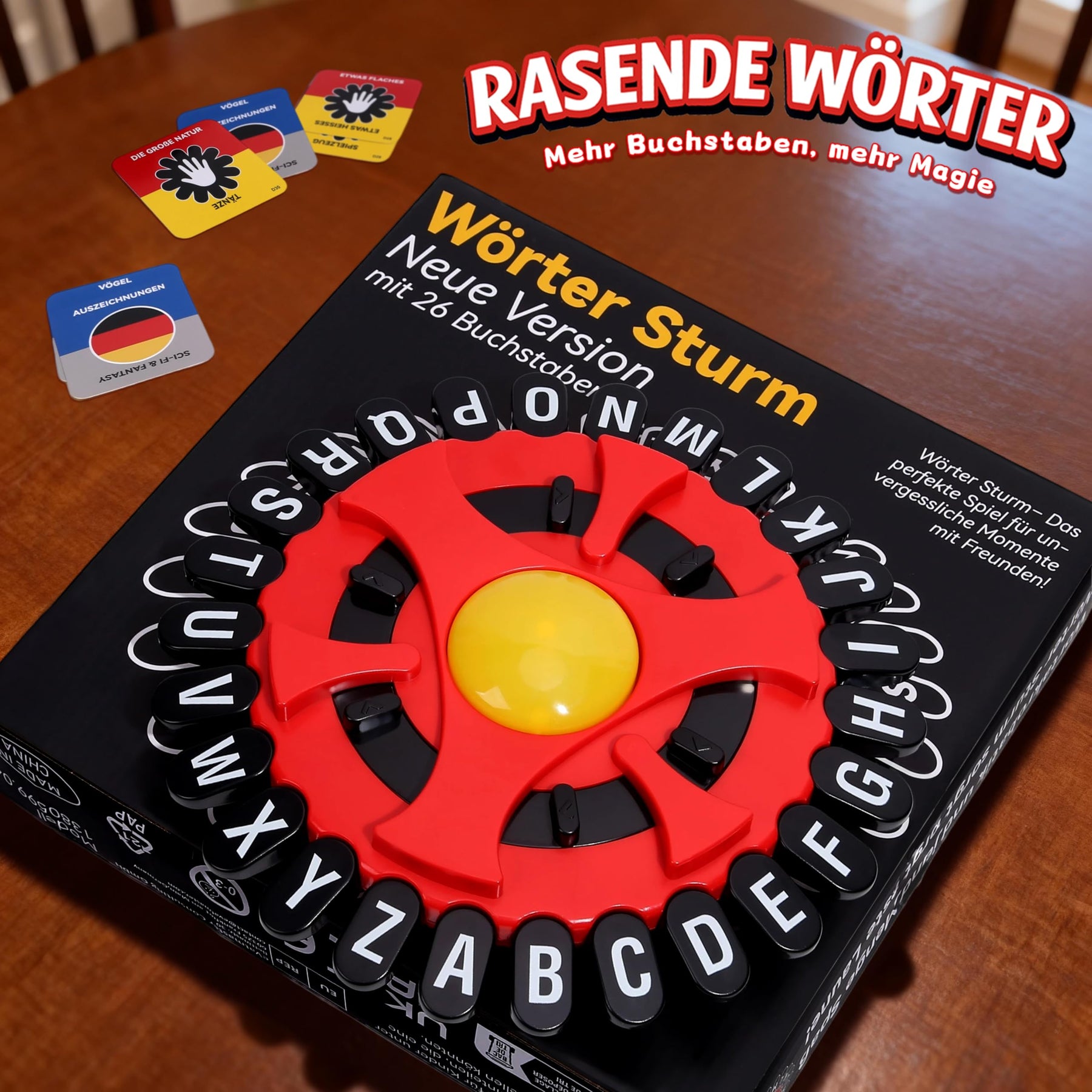 Asslye RASENDE WÖRTER Spiel - Wortspiel Buchstaben Drücken mit Timer, Familienspiele Brettspiele Partyspiele für Kinder und Erwachsene, 2–8 Spieler (Schwarz Rot)