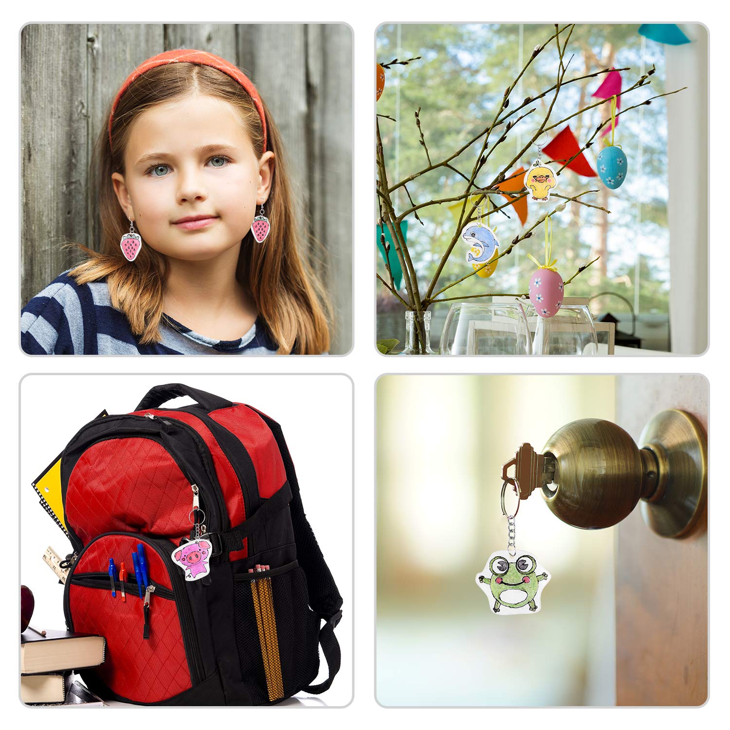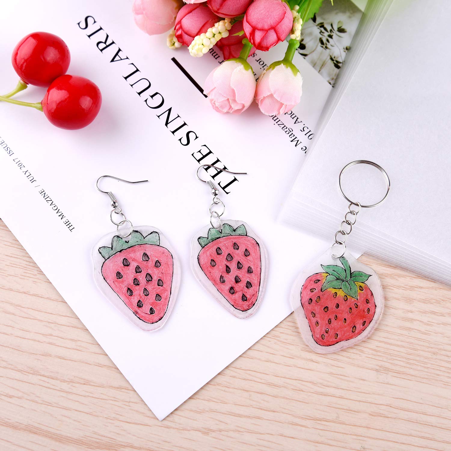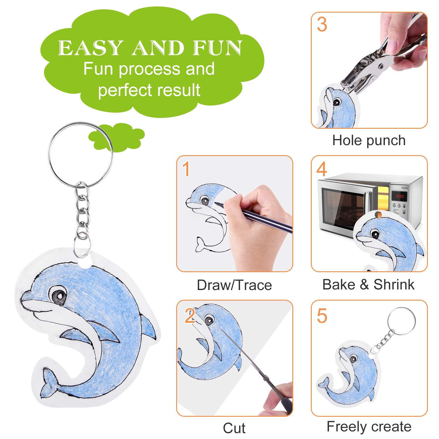 - Einfach zu bedienen: Zeichnen und malen Sie Ihr Lieblingsmuster, schneiden Sie es mit der Schere aus und stanzen Sie ein Loch. Die Folie schrumpft im Backofen! Bastelspaß pur!