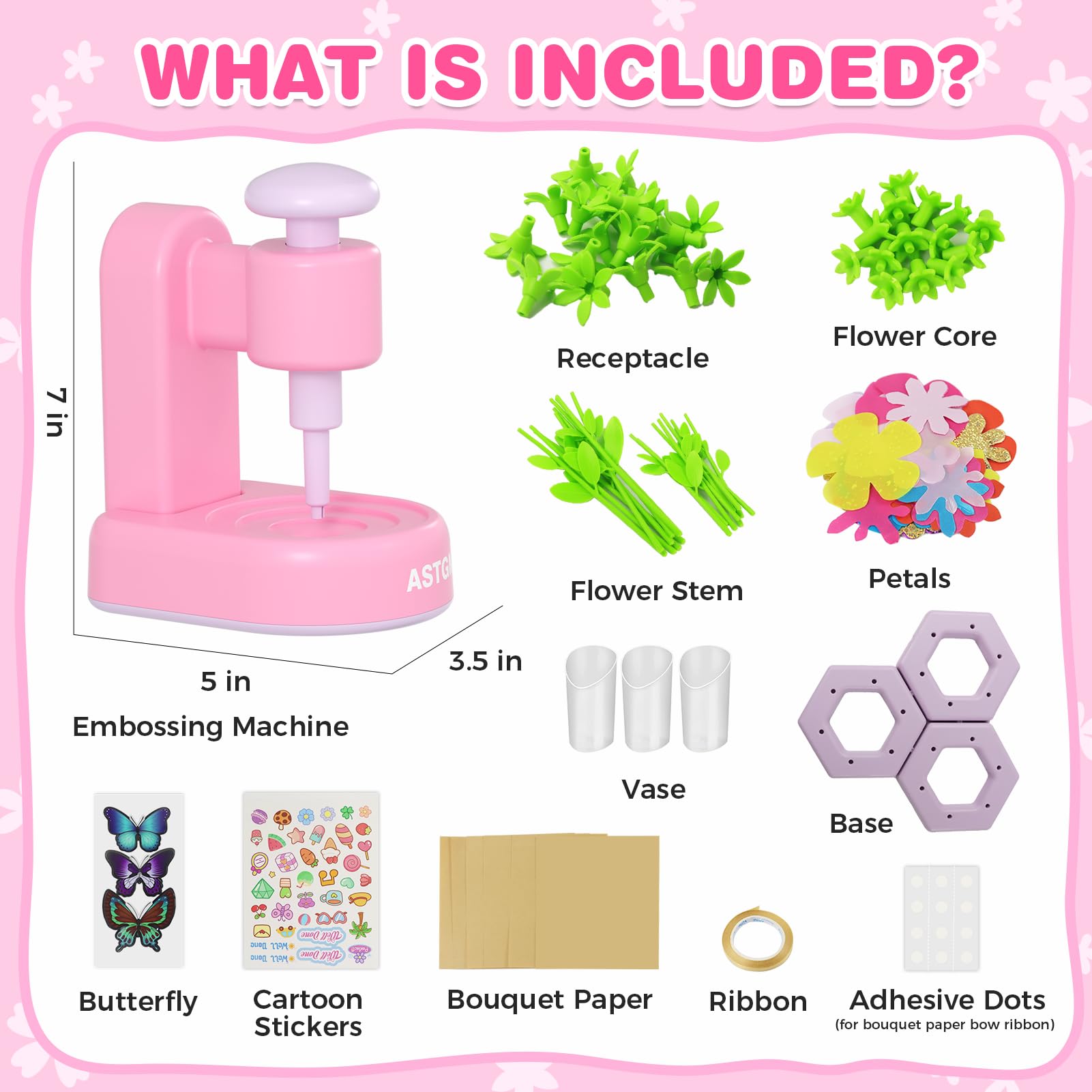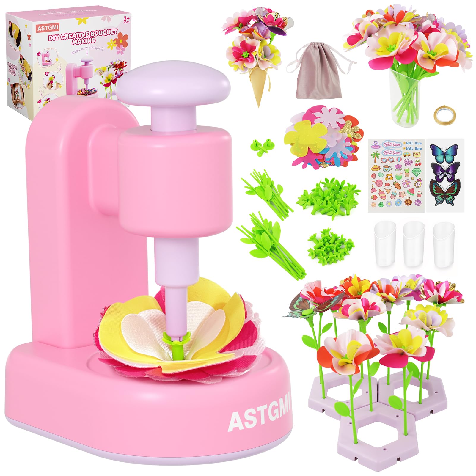 ASTGMI DIY Blumen Bastelset Kinder, Blumen Basteln Spielzeug mit Blumenmaschine, DIY MädchenSpielzeug 3 4 5 6 Jahre, Geschenk Mädchen ab 3+ Jahre, Geschenk für Geburtstag Weihnachten