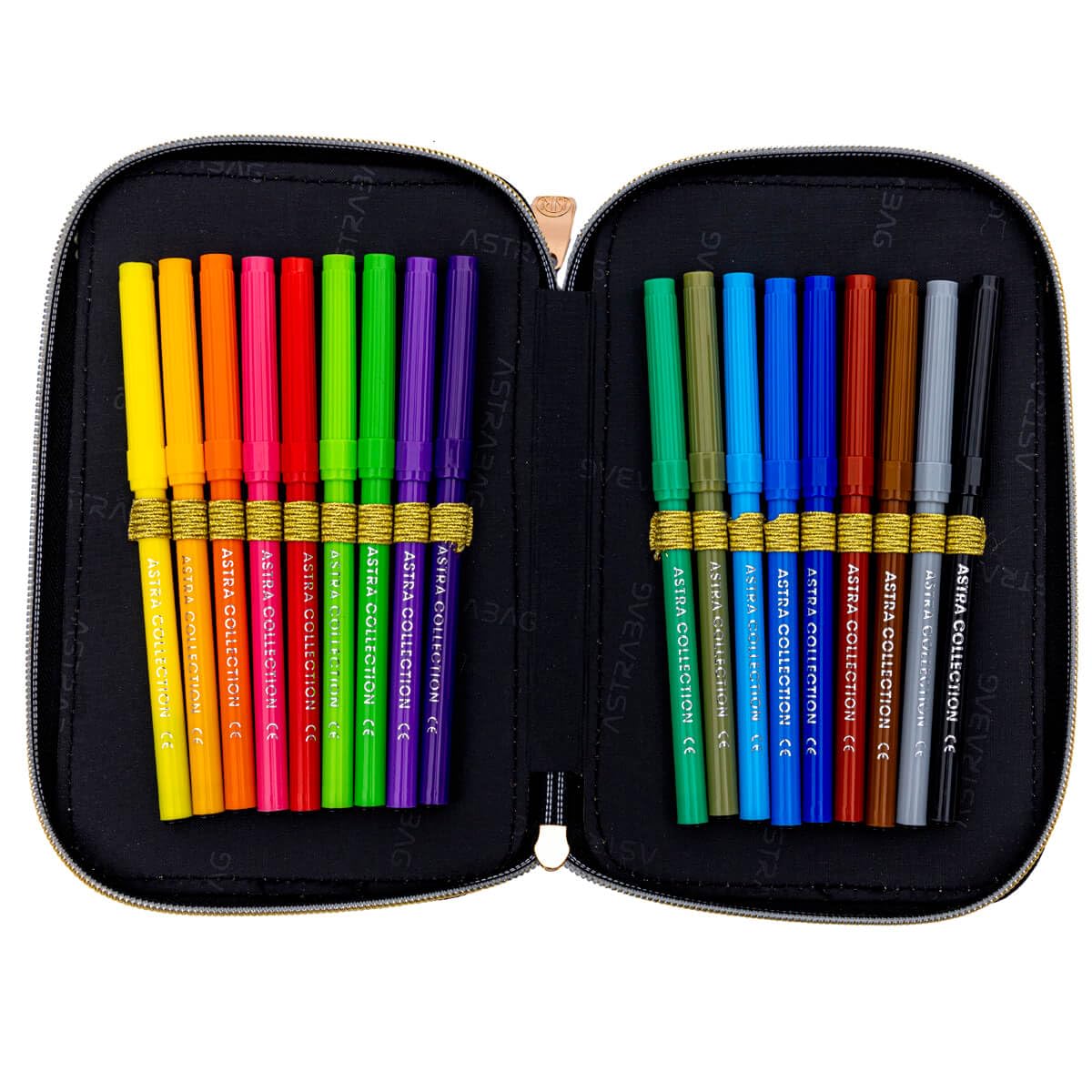 - ✅ Detaillierte Produktbeschreibung: 3 Fächer Inhalt: > 18 Filzstifte > 18 Buntstift > 2 Bleistift > 2 Stifte > 1 Kugelschreiber > Schere > Radierer > Spitzer > Geometrischer Satz