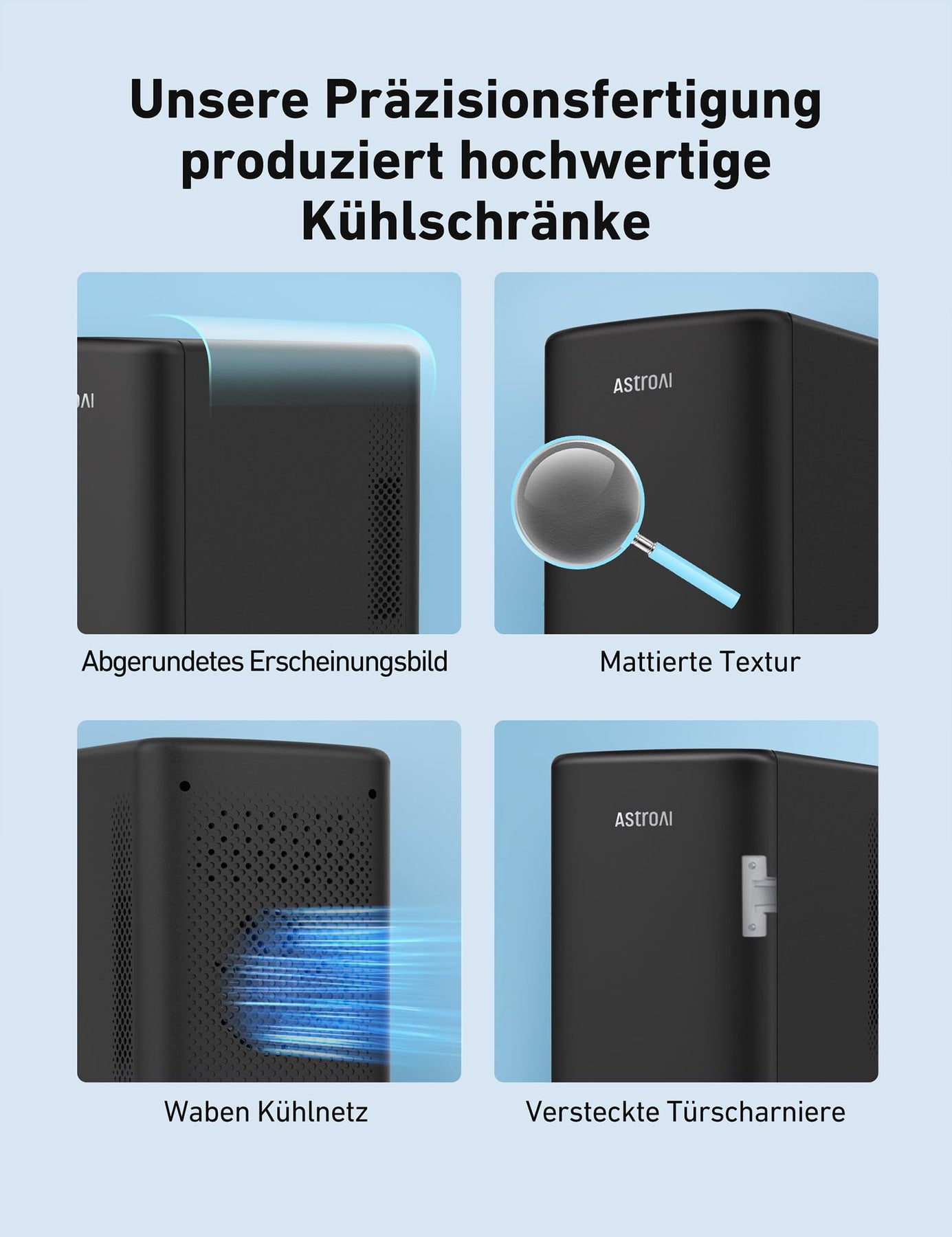 - 【Praktisch und stilvoll】: Der mini Kühlschrank hat eine futuristische Ästhetik, viele Funktionen und ein geräuscharmes System. Der verbesserte AstroAI 6L Skincare Fridge ist die erste Wahl für Schlafzimmer, Büros, Schlafsäle, Reisen und mehr.