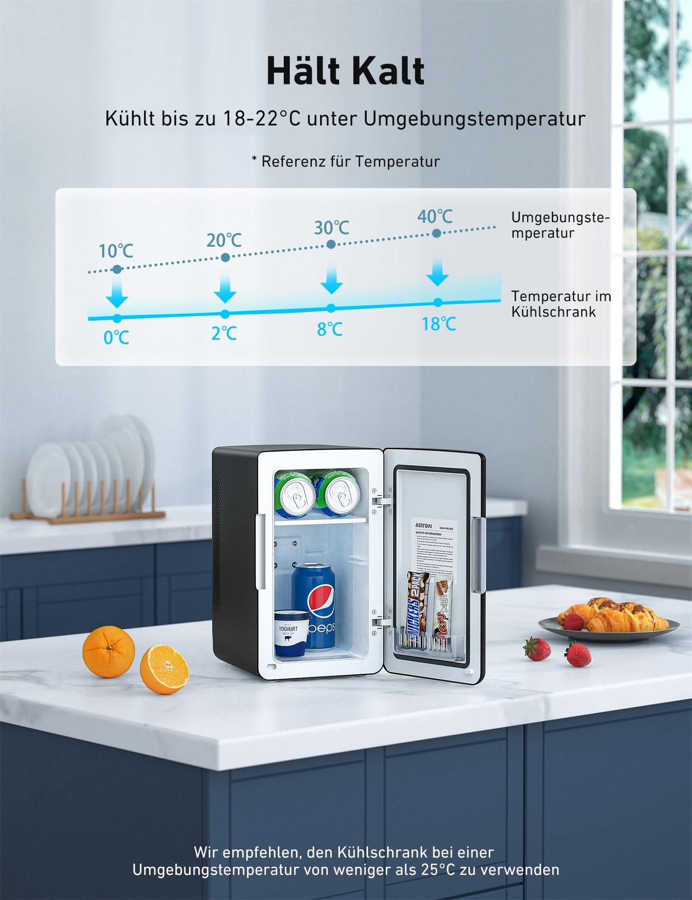 - 【Wärme- und Kühlfunktion】: 32-40 ℉ (18-22 ℃) unter der Umgebungstemperatur oder bis zu 150 ° F (66 ° C) warm halten. Mit verbesserter Technologie wie einem verbesserten Kühlchip und einer verbesserten Isolierung bietet der AstroAI-Minikühlschrank eine hervorragende Temperaturkontrolle und Leistung.