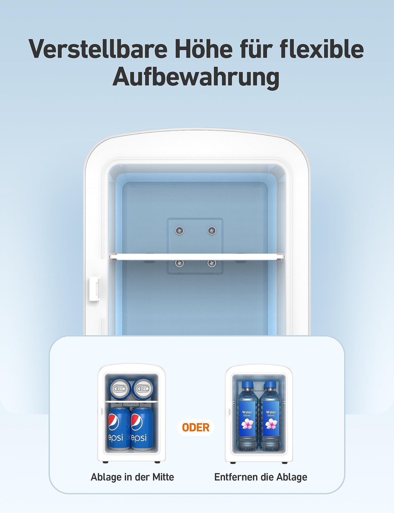 - 【4 Liter Kapazität】Dieser Kühlschrank fasst problemlos 6 Dosen (330ML). Die Innenmaße sind (H) 20,5 cm x (B) 14 cm x (T) 13,5 cm. Er verfügt außerdem über ein herausnehmbares Regal, das das Trennen kleiner Gegenstände wie Getränke, Bier, Muttermilch, Hautpflegeprodukte, Kosmetika oder Lebensmittel erleichtert. Dieser Mini-Kühlschrank ist ein tolles Geschenk, um Freunden und Familie Liebe zu zeigen.