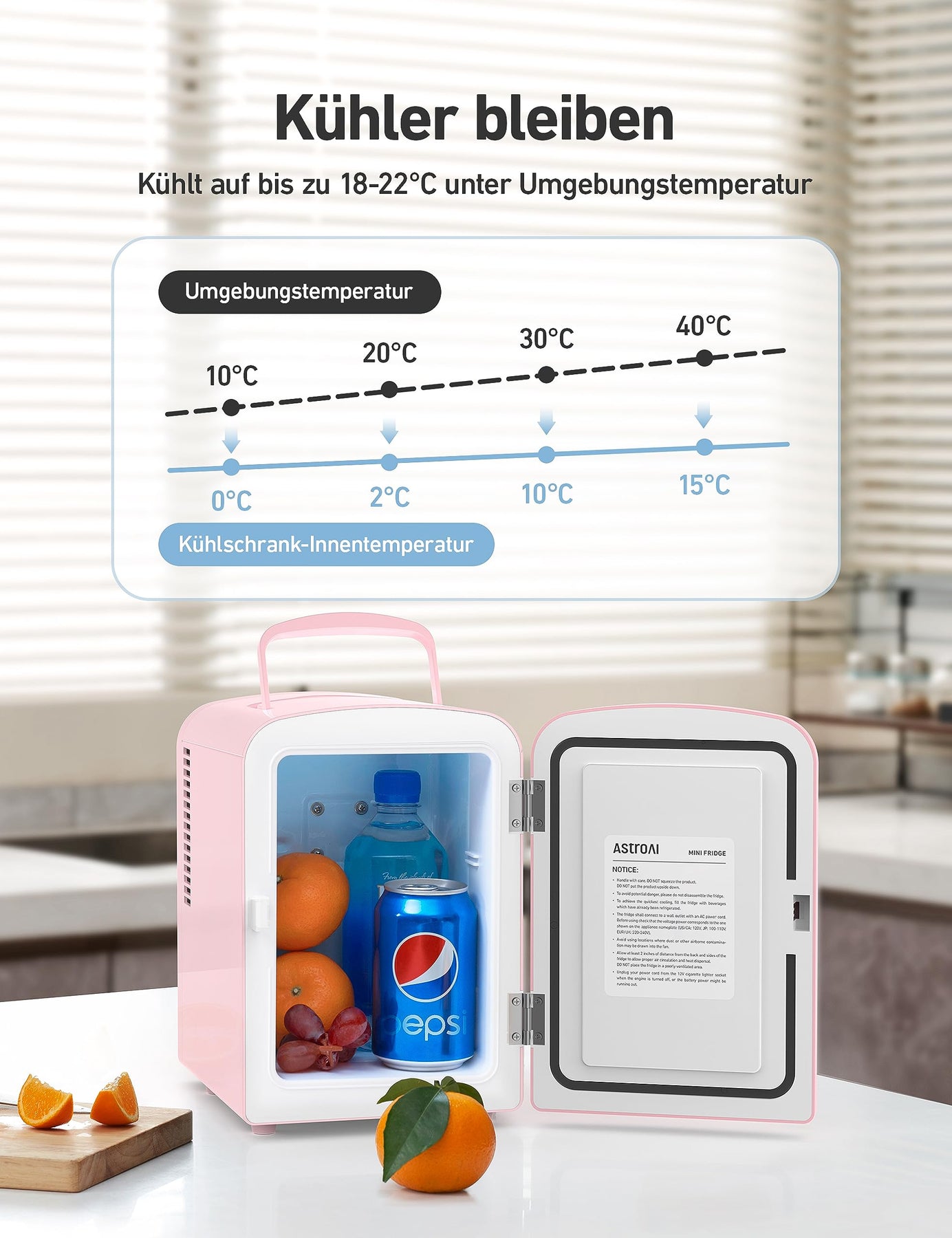 - 【Kompakter Mini Kühlschrank】 Der AstroAI Mini-kühlschränke ist ein kleiner Kühlschrank zur Aufbewahrung von Lebensmitteln, Getränken, Bier, Snacks, Muttermilch, Kosmetikum, Hautpflegeprodukten und mehr. Er eignet sich hervorragend für Schlafzimmer, Büros, Wohnheime, Reisen, Bootfahren, Camping und so weiter.