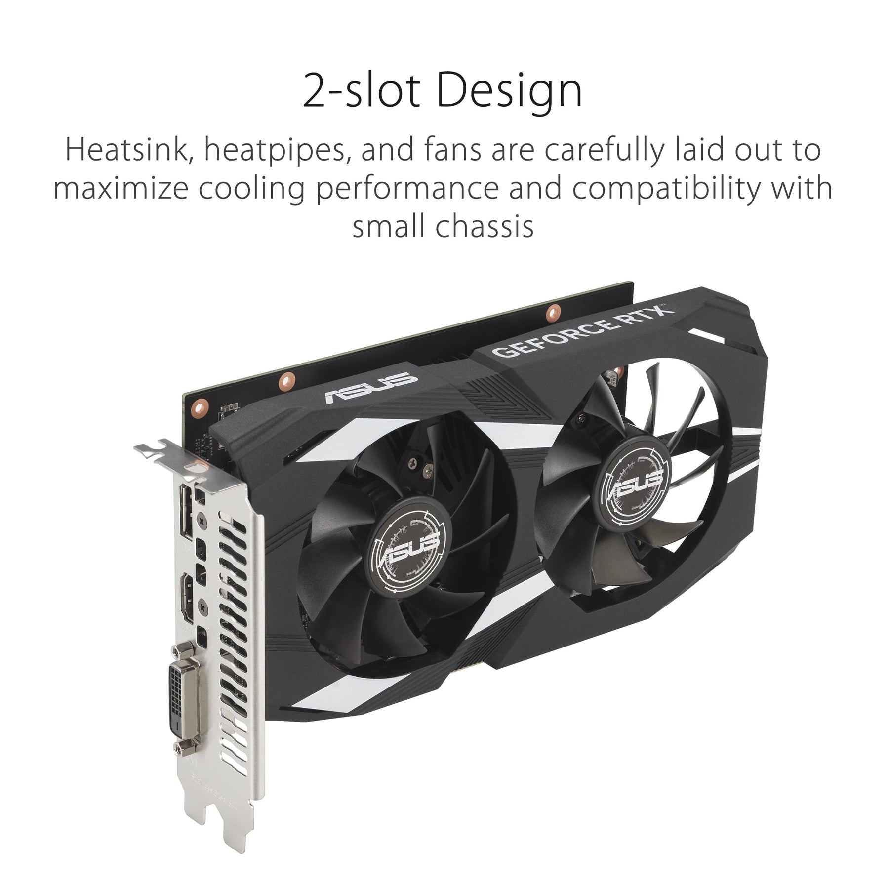ASUS Dual GeForce RTX™ 3050 OC Edition 6GB GDDR6 mit zwei leistungsstarken Lüftern für AAA-Gaming-Leistung und Raytracing.