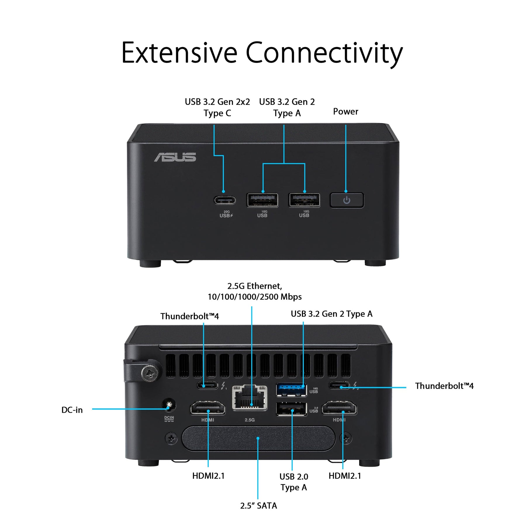 Die ASUS NUC Produktlinien wurden in Zusammenarbeit zwischen ASUS und Intel entwickelt und bieten kompromisslose Leistung im kleinsten Formfaktor, unterstützt durch die branchenweit beste Qualität und Zuverlässigkeit, innovative modulare Designs, erweiterte Lebenserwartungsoptionen, intelligente Kühllösungen und fortschrittliche KI-Funktionen. Die Vielseitigkeit der Produkte zeigt sich in einer Reihe von Konfigurationen, die den unterschiedlichen Bedürfnissen der Benutzer gerecht werden, von Entwicklern über Power-User bis hin zur Heimnutzung. Der ASUS NUC ist die bevorzugte Wahl für eine Vielzahl von Geschäftsanwendungen, vertikalen Branchen und alltäglichen Nutzern. Er kombiniert außergewöhnliche Leistung mit essentiellen Funktionen und zielt darauf ab, die nächste Generation von PC Erfahrungen zu gestalten.
