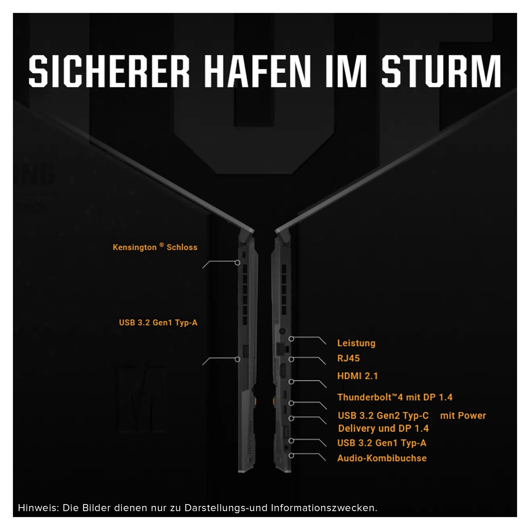 - 【Anschlüsse】1x Stromanschluss, 1x RJ45 LAN port, 1x Kopfhörer/Mikrofon Kombibuchse (3.5 mm), 1x USC 4 Type-C with support for DisplayPort, 1x USB 3.2 Gen 2 Type-C with support for DisplayPort / power delivery / G-SYNC (data speed up to 10Gbps), 2x USB 3.2 Gen 1 Type-A (data speed up to 5Gbps), 1x HDMI 2.1, Wi-Fi 6 (802.11ax Dual-Band 2*2) + Bluetooth 5.3