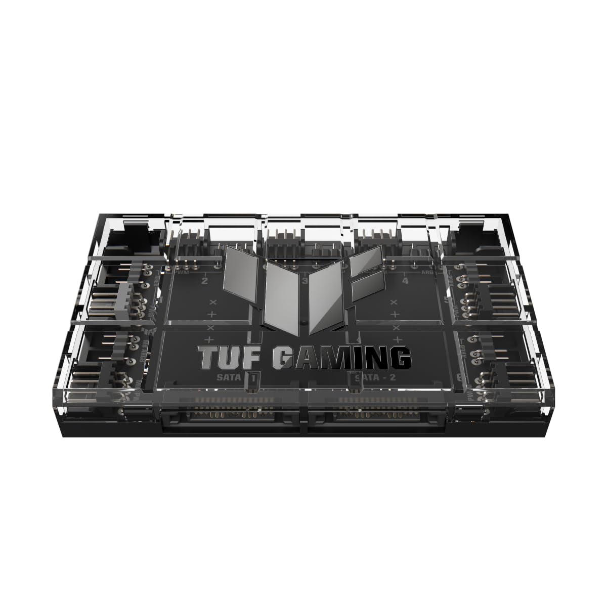 ASUS TUF Gaming ARGB PWM Lüfter Hub (6x Ports für PWM Gehäuselüfter und ARGB-Steuerung, 2x SATA-Stromanschlüsse, synchronisiert Kühlung und Lichteffekte, magnetische Befestigung, Stromanzeige)