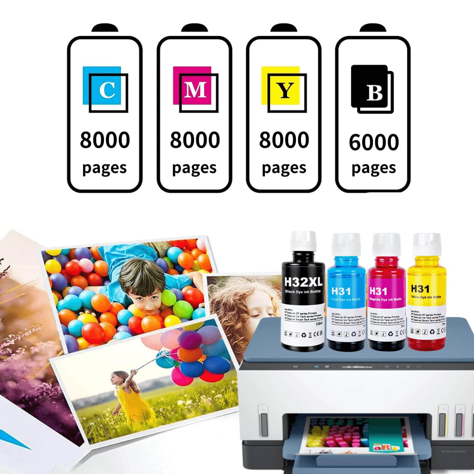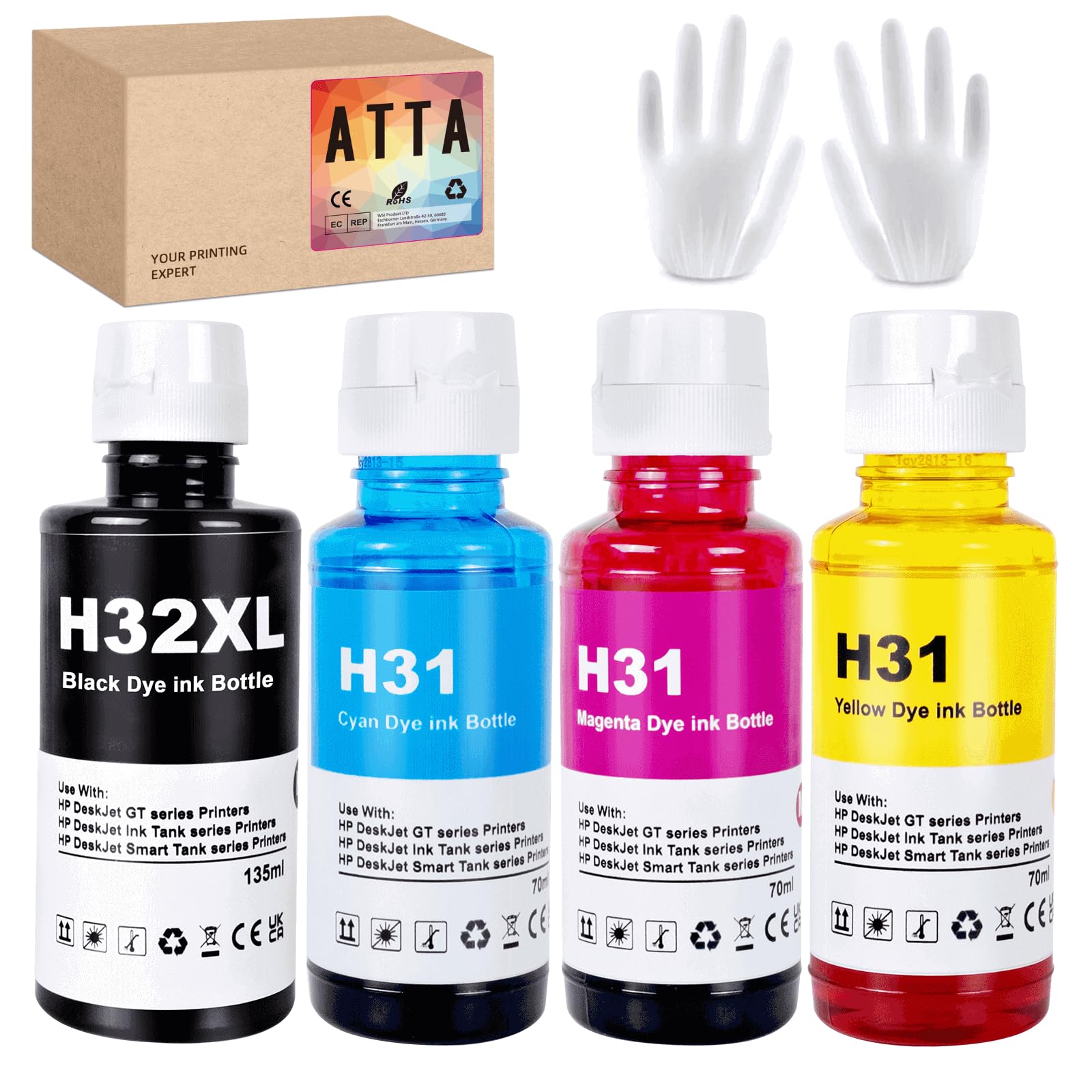 - Paket enthält: 1 x 135ml 32XL schwarze Tinte; 1 x 70ml 31 cyan Tinte; 1 x 70ml 31 magenta Tinte; 1 x 70ml 31 gelbe Tinte. Insgesamt 345ml 31 32XL Tinte.