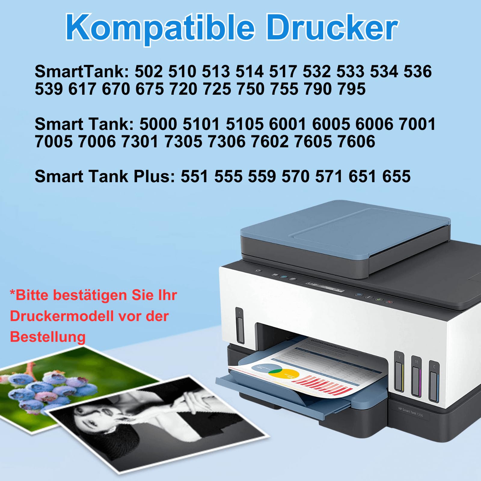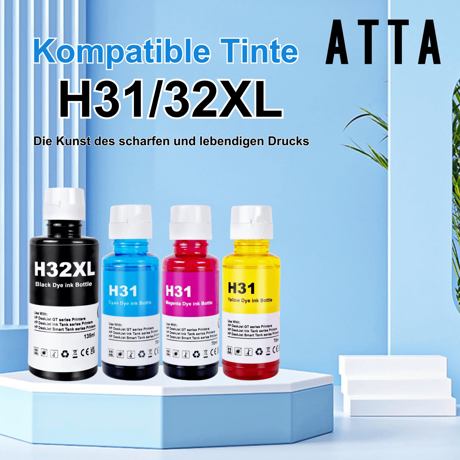 - Breite Kompatibilität: Die ATTA 31 32XL-Tintenflasche ist mit einer Reihe von Druckermodellen kompatibel: Smart Tank Plus 551 555 559 570 571 651 655 SmartTank 502 510 513 514 517 532 533 534 536 539 617 670 675 720 725 750 755 790 795 Smart Tank 5000 5101 5105 6001 6005 6006 7001 7005 7006 7301 7305 7306 7602 7605 7606