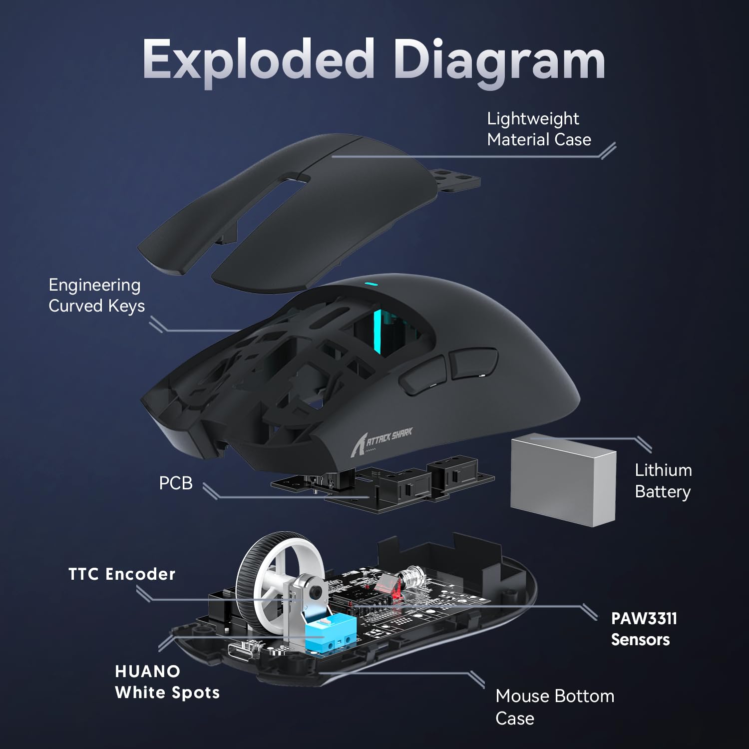 • 【TTC Encoder】The X11 mouse wheel adopts TTC encoder, which has been deeply optimized, debugged and calibrated to make it feel crisper, rebound faster and have a strong sense of scale. Geeignet für FPS Games, sodass Sie eine Stufe schneller als die Enemy wechseln können.