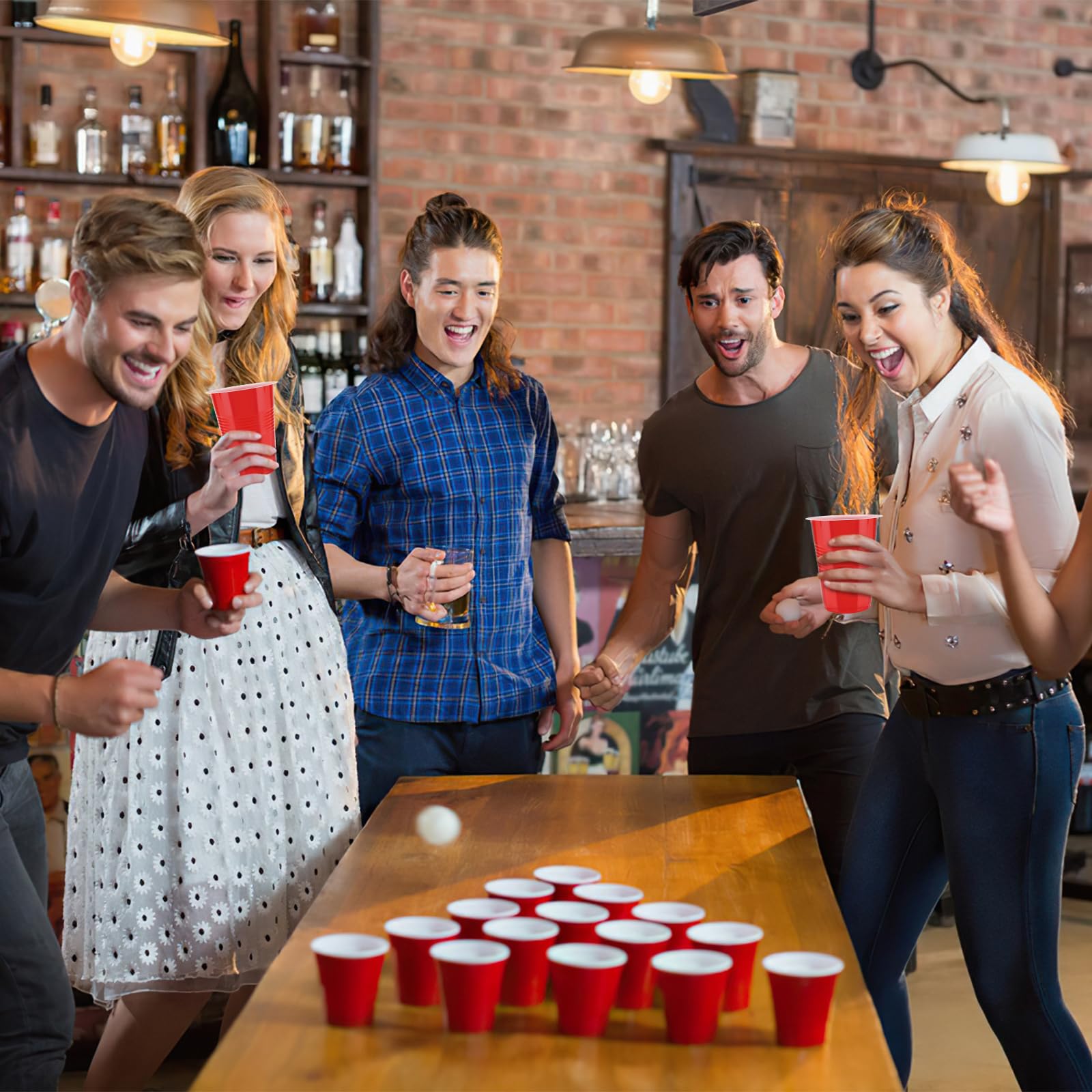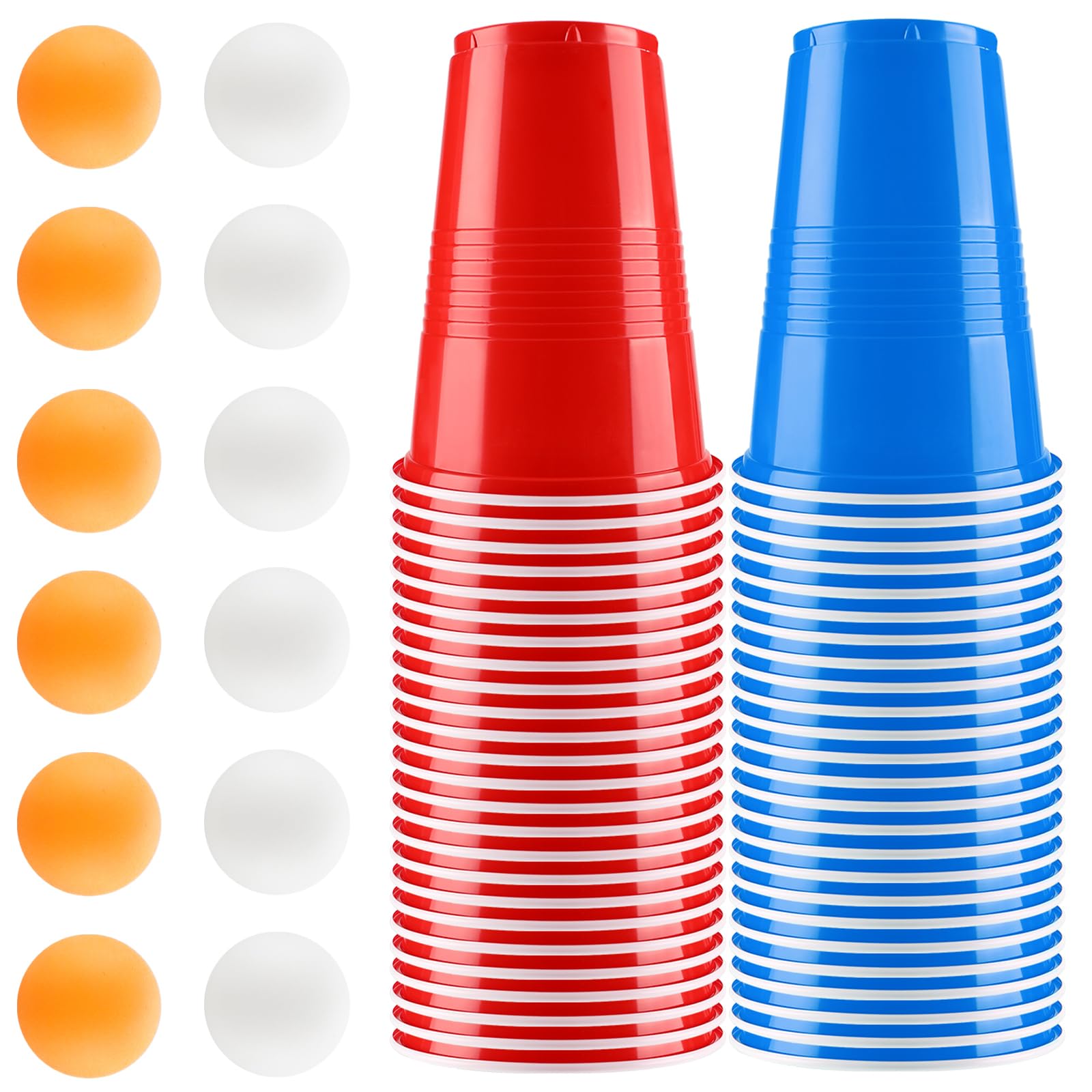 Auauraintt Bierpong Becher Set,Beerpong Partybecher Enthält 50 Becher (16oz) und 12 Tischtennisbälle,mehrwegbecher,Für Party Trinkspiele,Party Geburtstag Festivals Hochzeit Camping