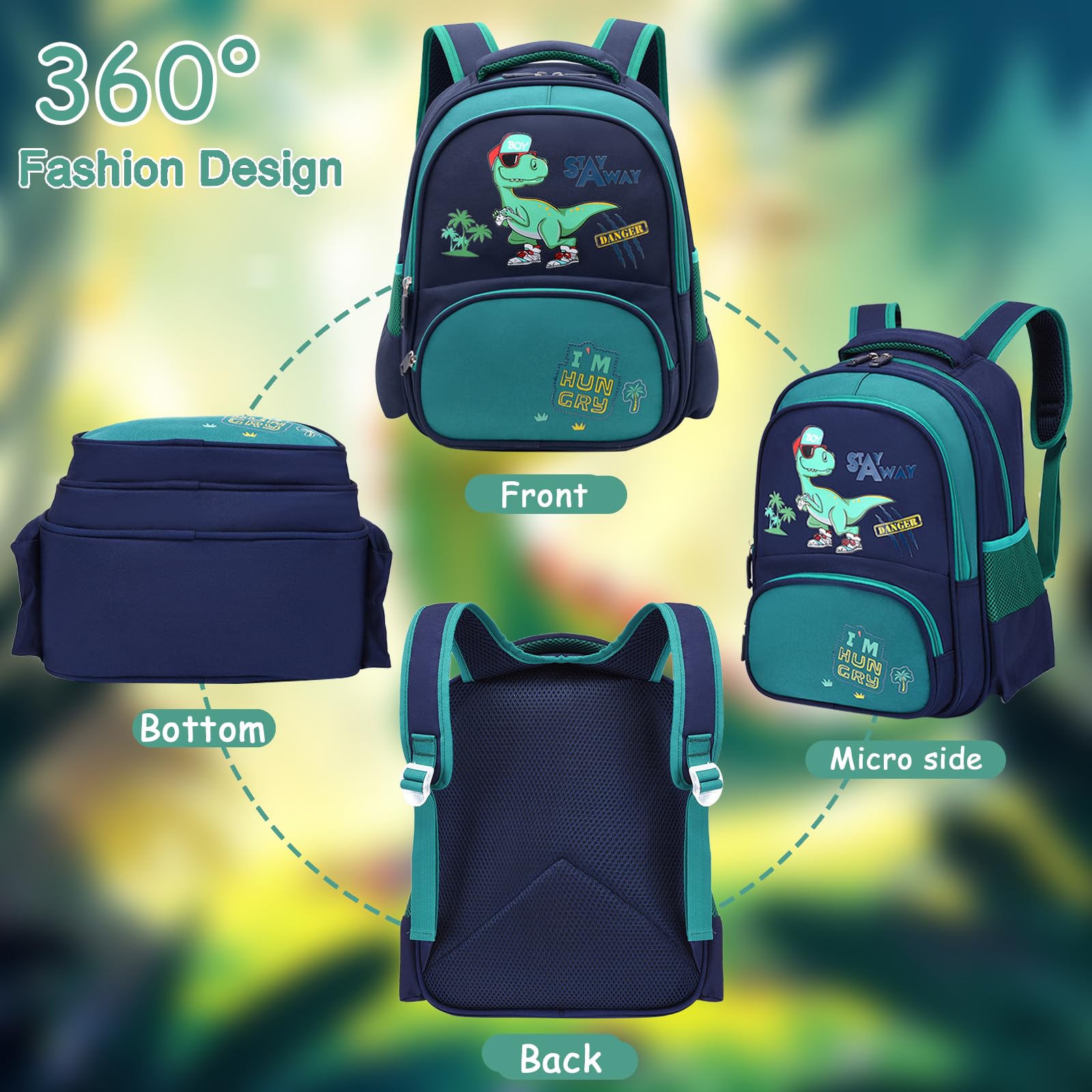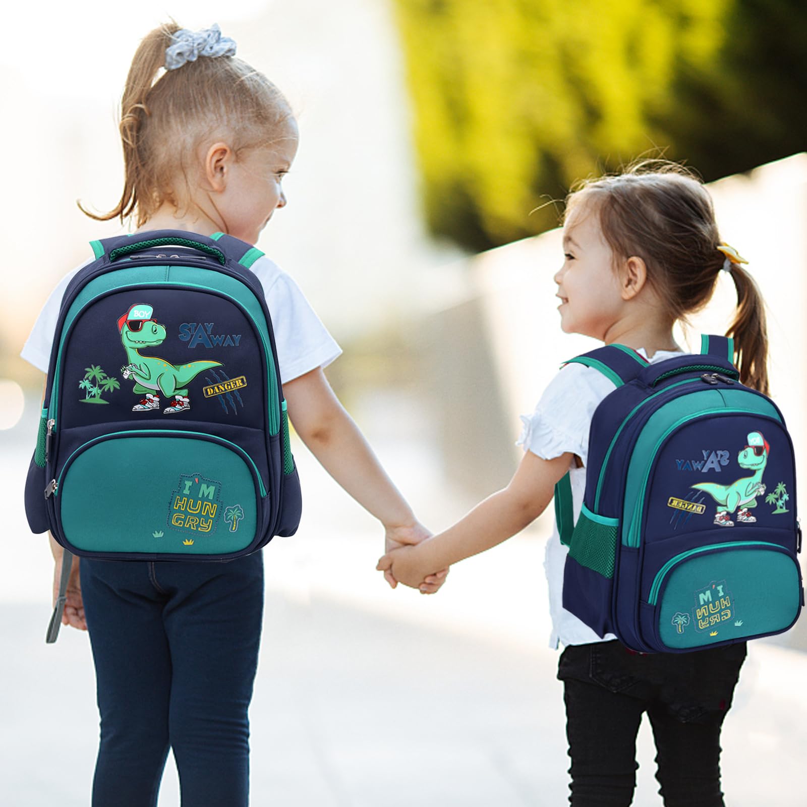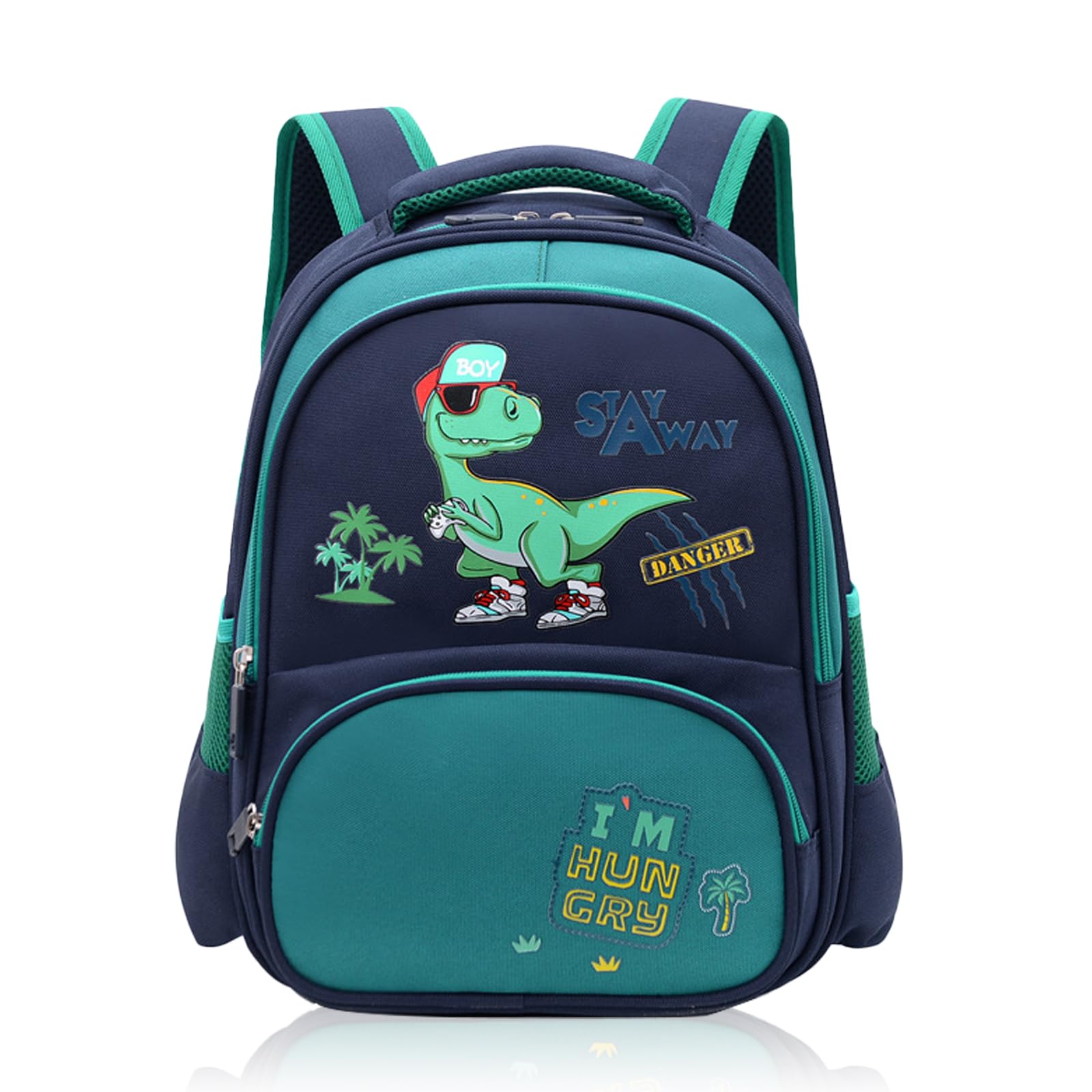 Auirshiky Kinderrucksack Jungen, Kleiner Dinosaurier Rucksack Kinder mit Brustgurt, Wasserdicht Vorschule Kleinkind Schulrucksack Kindergarten Schultasche (Dinosaurier Grün) (Mail Blue)