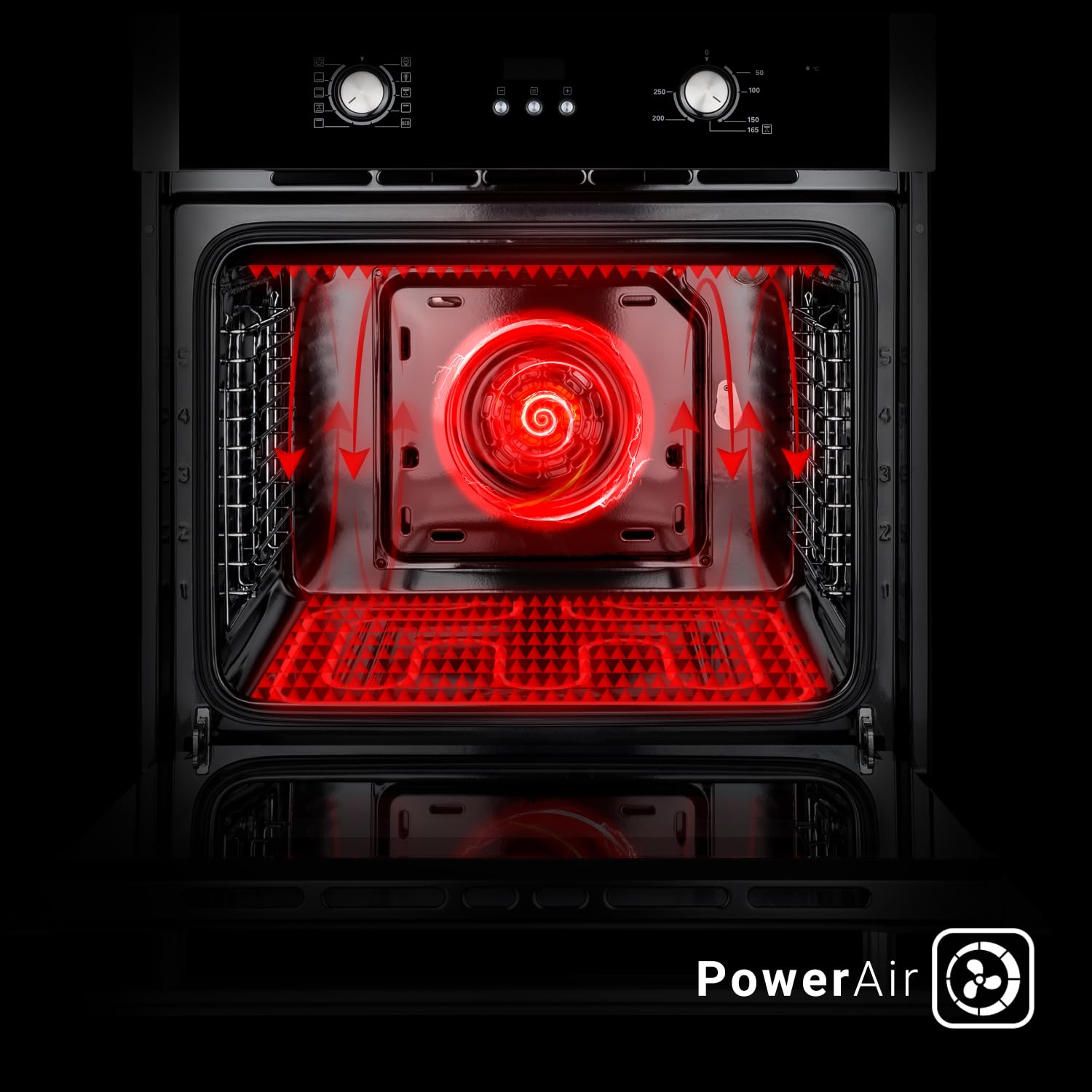 - Eine OPTIMALE WÄRMEVERTEILUNG im Innenraum ist essenziell für perfekte Garergebnisse. Der BO8805SS Backofen mit der PowerAir Heißluft-Funktion und Ringheizkörper gewährleistet eine einheitliche Verbreitung der Wärme im Backofeninnenraum.