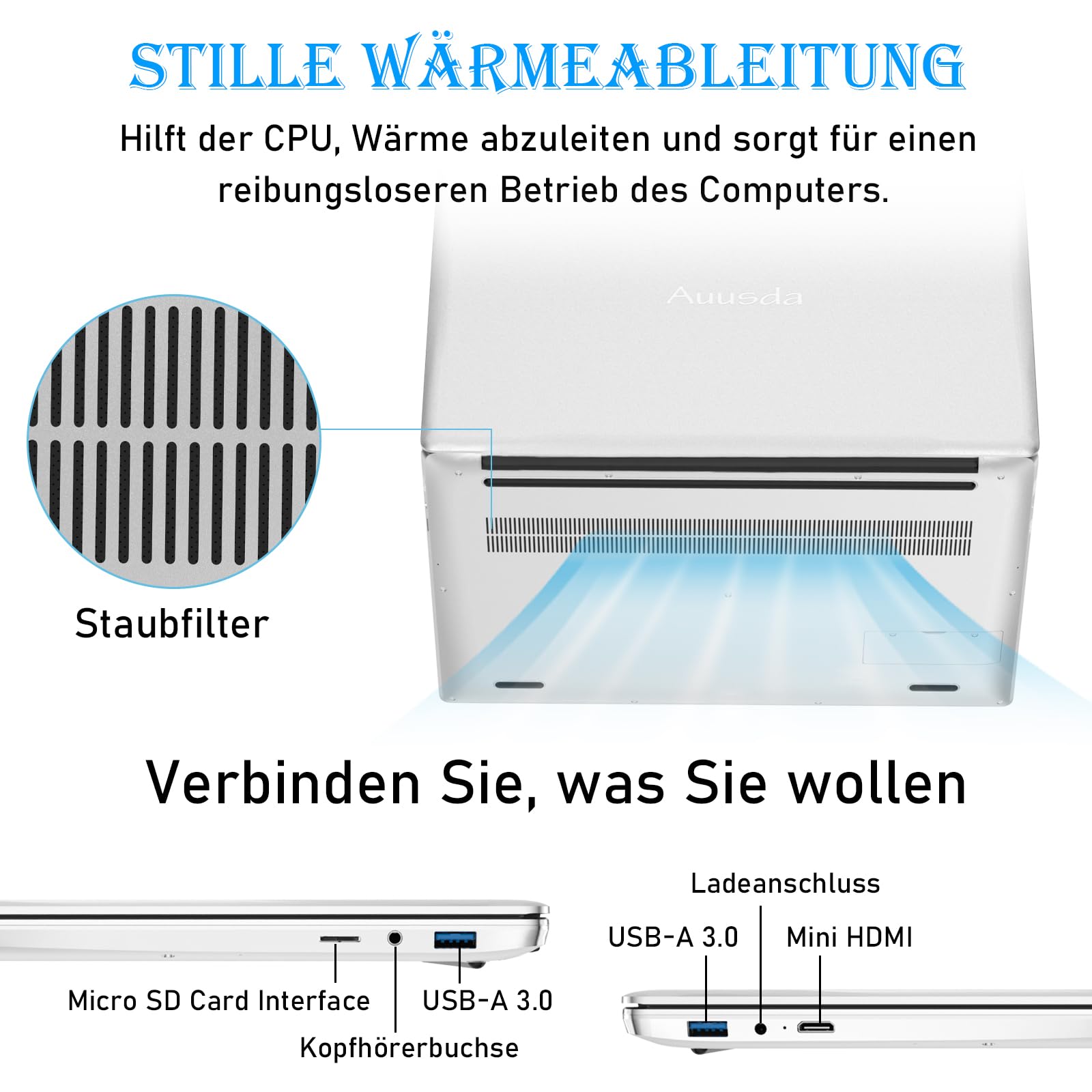 - 🔒 Robuste Hülle für dauerhafte Leistung! Dieser Laptop ist in ein robustes ABS+PC-Gehäuse eingefasst, das für verbesserten Schutz sorgt. Der Akku garantiert eine lang anhaltende Leistung. FCC- und CE-Zertifizierungen unterstreichen die Qualität, und eine 2-jährige kostenlose Ersatzgarantie bietet zusätzliche Sicherheit. Rüsten Sie jetzt auf Auusda für eine unübertroffene Computererfahrung!