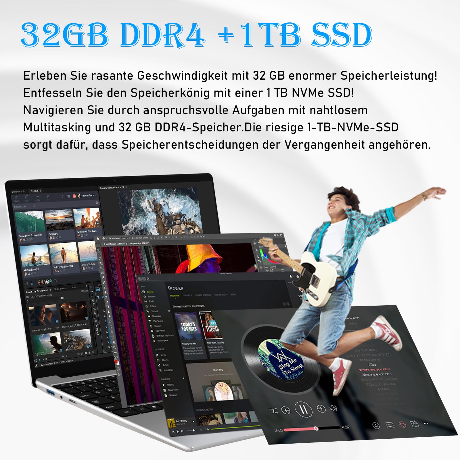 - 🚀 Monumentales Upgrade in Speicher und Kapazität! Erleben Sie eine revolutionäre Steigerung der Leistung! Mit 32GB DDR4 RAM übertrifft dieser Laptop Geräte mit DDR3 um ganze 50%! Die 1TB NVME SSD garantiert blitzschnellen Datenzugriff und bietet reichlich Platz. Erweitern Sie Ihre Optionen mit Upgrades auf eine beeindruckende 2TB SSD und eine 1TB microSD für maximale Speicherkapazität.