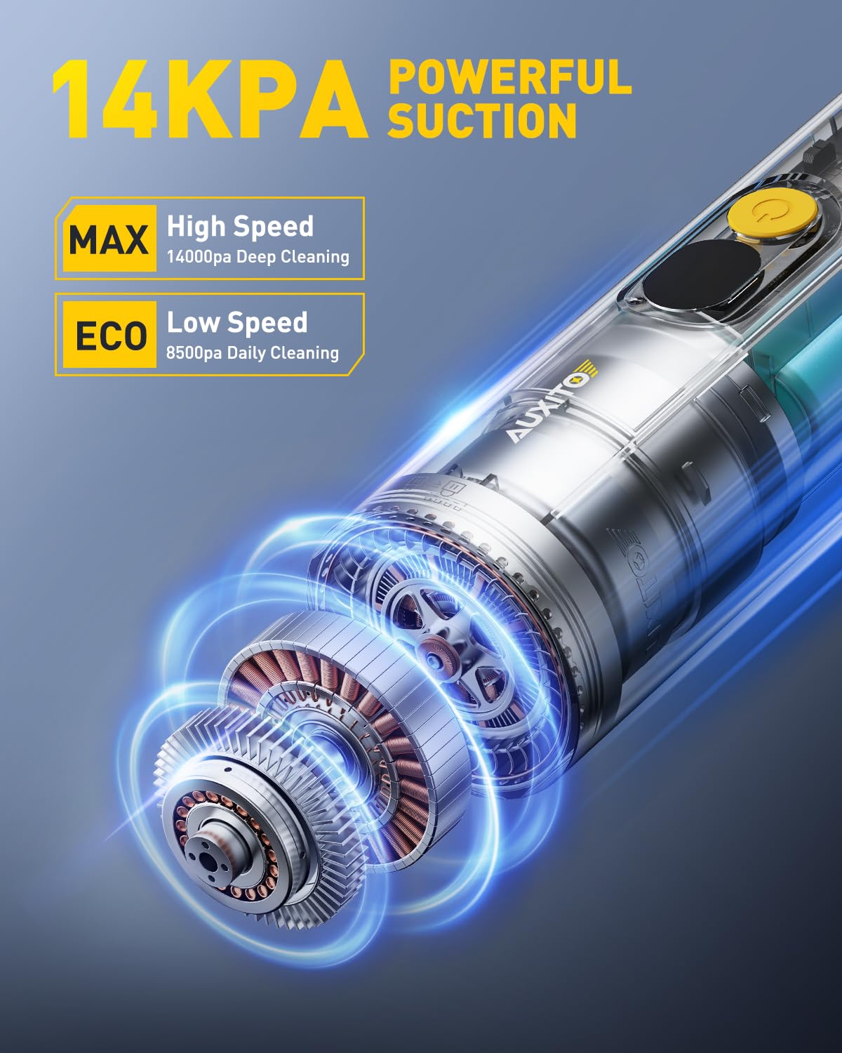 - 【Leistungsstarker 14000PA Handstaubsauger】Dieser kabellose Autostaubsauger verfügt über einen verbesserten bürstenlosen Hochgeschwindigkeitsmotor, der für eine starke Leistung sorgt.Die 2 einstellbaren Saugleistungsmodi von 8500PA und 14000PA, mit einer starken 14000PA Saugleistung, ermöglicht dieser Handstaubsauger für das Auto die Reinigung von Tierhaaren, Krümeln, Staub und Sand, die im Autositz oder Sofa versteckt sind.