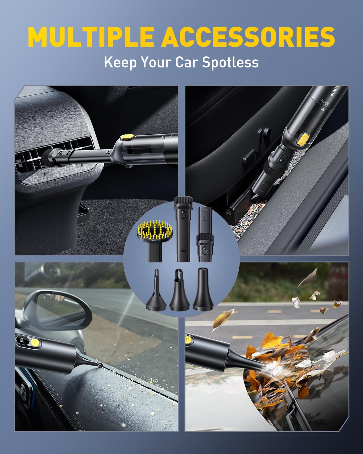 - 【Vielseitiges 4-IN-1 Design Handstaubsauger】Nicht nur ein Staubsauger, dieser kabellose Handstaubsauger kommt mit einer Vielzahl von Düsen, so dass Sie blasen, saugen und aufblasen für verschiedene Reinigungs- und Wartungsaufgaben. Ausgestattet mit einer Vielzahl von Zubehör, das das Blasen, Saugen, Aufblasen und Pumpen einer Vielzahl von Szenarien für den Einsatz erfüllen kann.