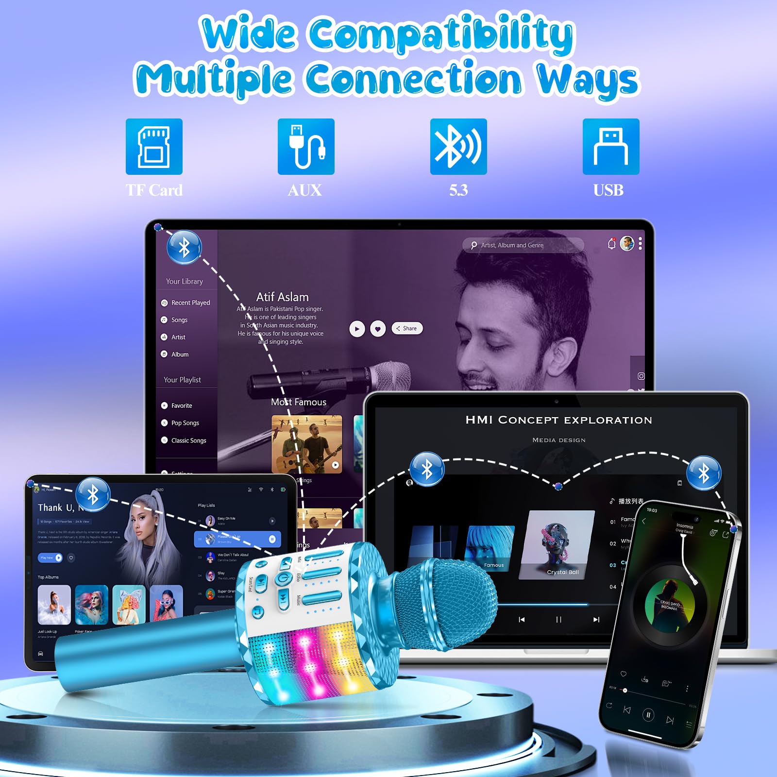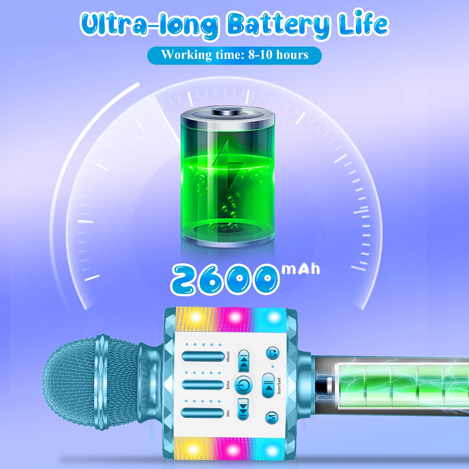 - 【Langlebig und tragbares Design】Mit einer eingebauten wiederaufladbaren Batterie bietet dieses tragbare drahtlose Mikrofon bis zu 8-10 Stunden Wiedergabezeit. Egal wo Sie sind, Sie brauchen sich keine Sorgen um die Akkulaufzeit zu machen. Es sorgt dafür, dass das Vergnügen den ganzen Tag lang für Ihre Mädchen anhält. Dieses Mädchenspielzeug hat auch einen Kopfhöreranschluss für das private Üben und ist kompakt und somit leicht tragbar.