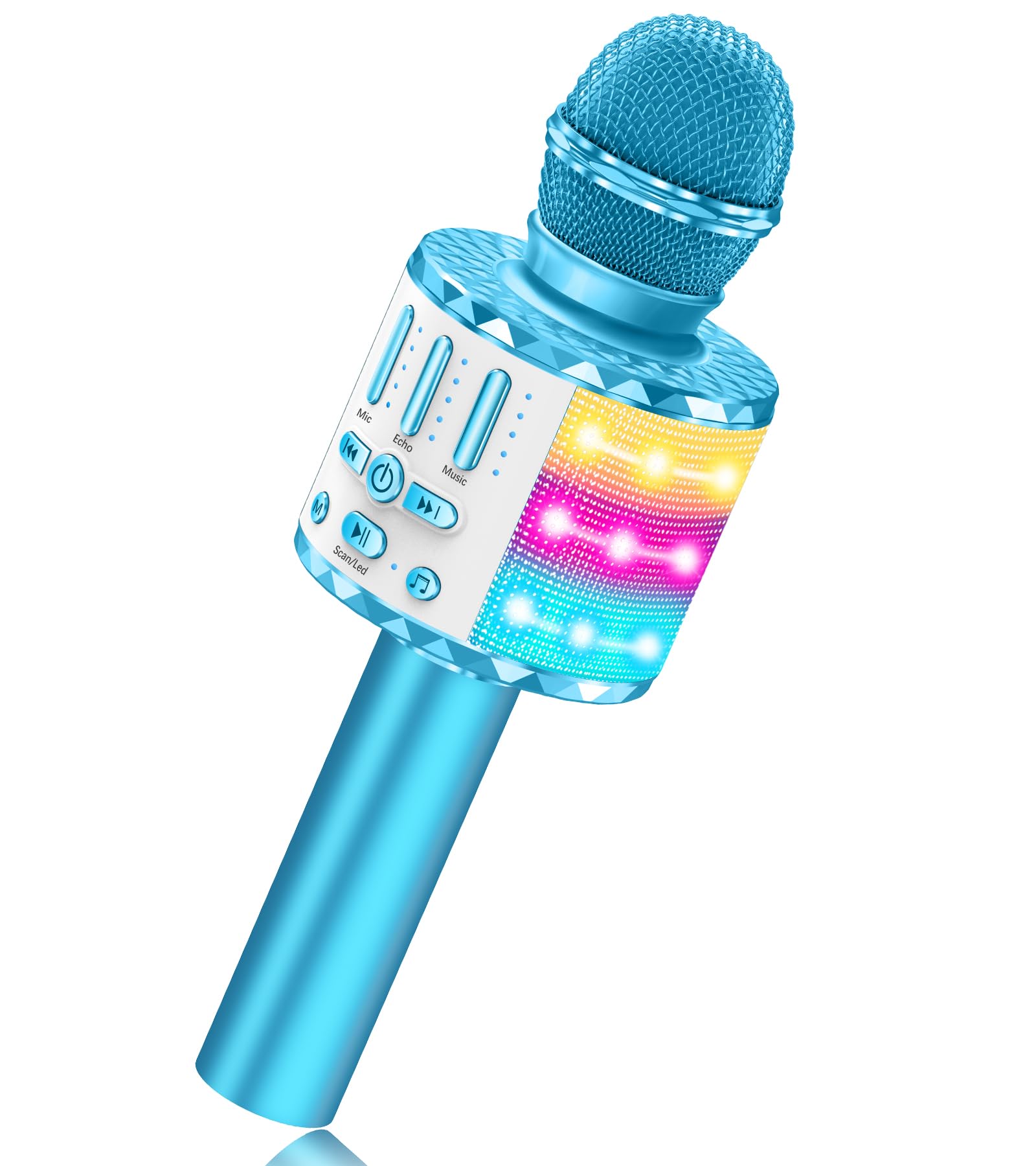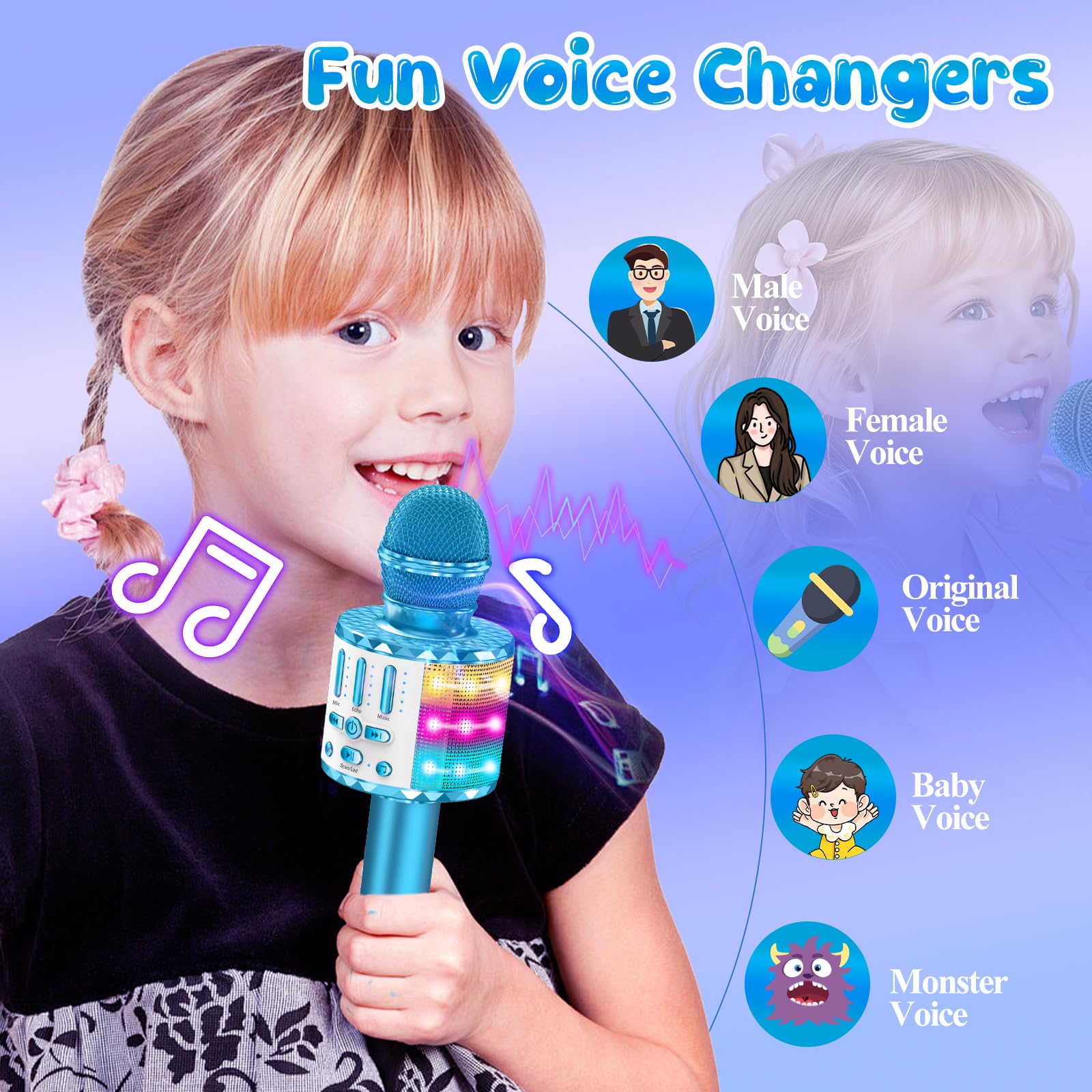 - 【Dynamische Lichtshow & Stimmeneffekte】Mit 5 lustigen Stimmenverzerrungseffekten (Mädchen, Junge, Baby, Monster und Original) bringt diese Karaoke-Maschine jeder Party eine besondere Anspannung. Die LED-Lichter tanzen mit der Musik, was eine lebendige Atmosphäre schafft. Darüber hinaus synchronisieren sich die Lichteffekte mit der Musik, um ein lebendiges Karaoke-Erlebnis zu bieten. Perfekt für Mädchen, Kinder und familiären Spaß!
