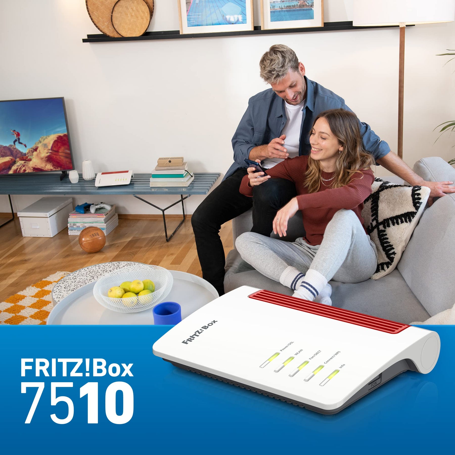 - Lieferumfang: FRITZ!Box 7510, Netzteil, 4 Meter DSL-Anschlusskabel, 1,5 m LAN-Kabel, Installationsanleitung