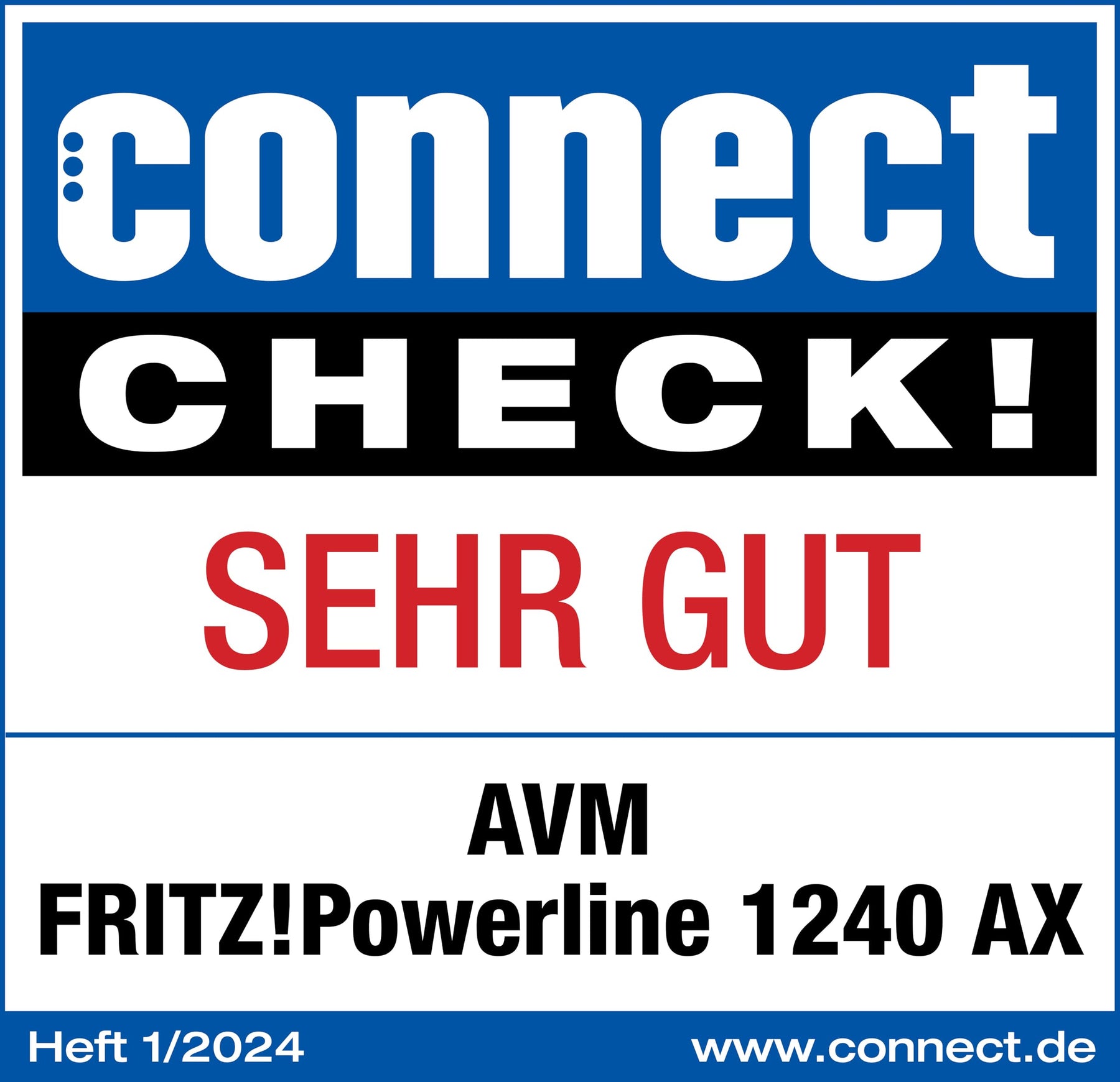 - Lieferumfang: FRITZ!Powerline 1240 AX, Netzwerkkabel, Installationsanleitung