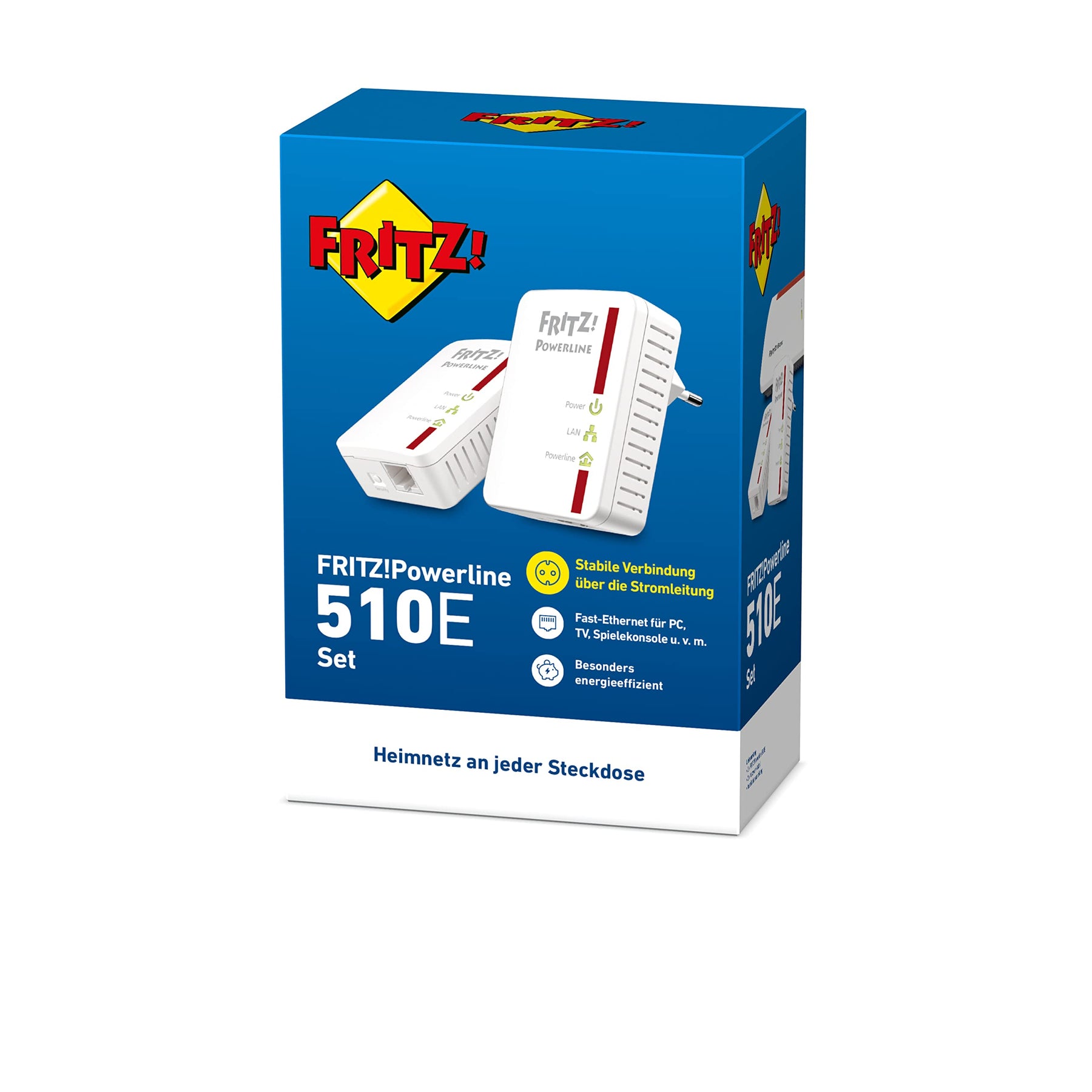 - Lieferumfang: 2 x FRITZ!Powerline 510E, 2 x 1,80 m Netzwerkkabel, Installationsanleitung