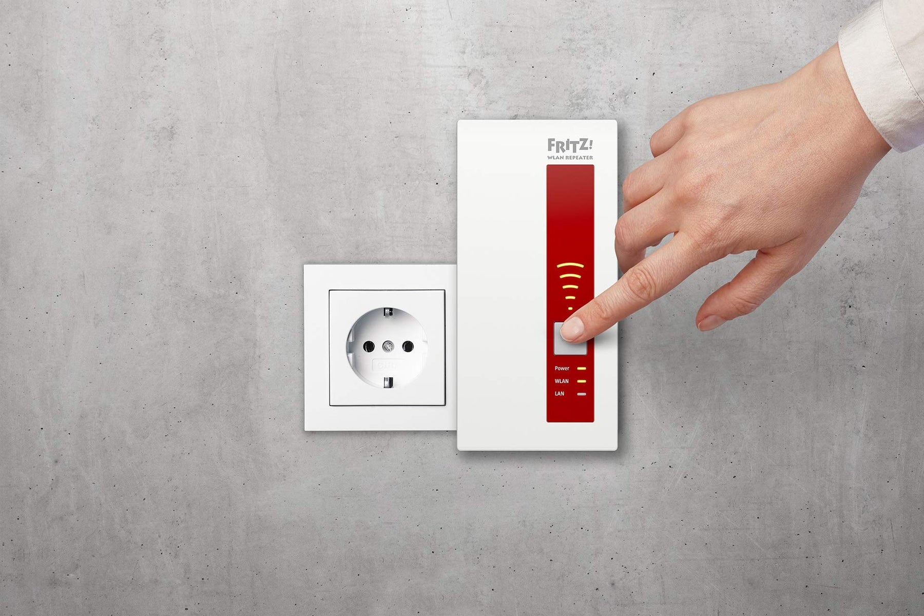 AVM FRITZ! WLAN Mesh Repeater 1750E (Dual-WLAN AC + N bis zu 1.300 MBit/s (5 GHz) + 450MBit/s (2,4 GHz), deutschsprachige Version) rot/weiß