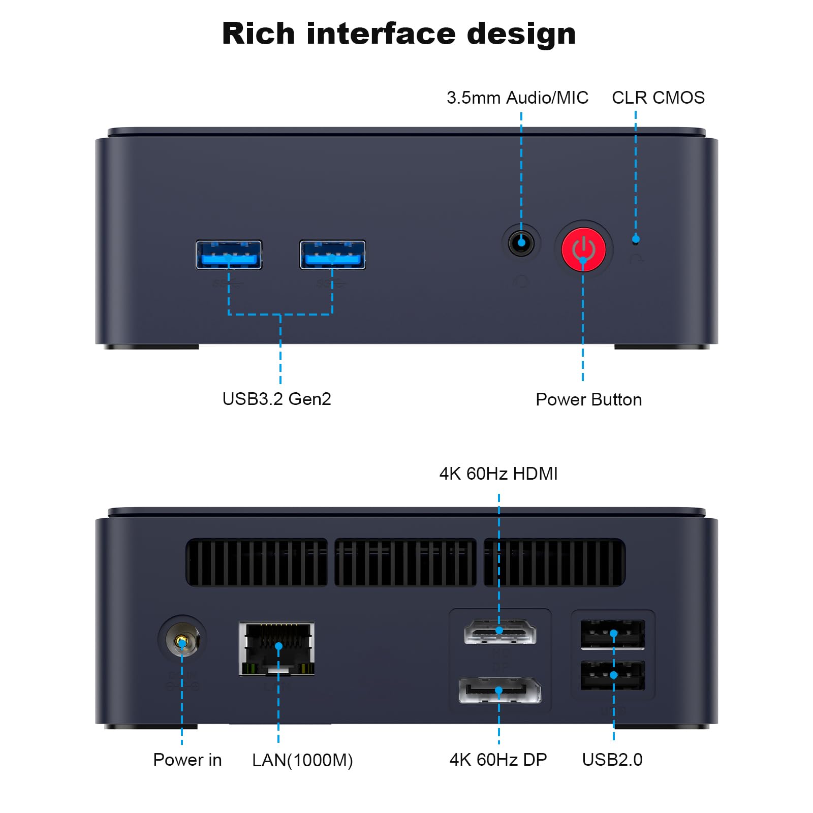 • W11 und Drahtloses Netzwerk: Der AK10 Pro Mikrocomputer mit installiertem W11 bietet vielseitige Einsatzmöglichkeiten wie Zuhause, Unterhaltung, Büro, Online-Bildung und Industrie. Die drahtlose 802.11ac-Dualband-Konnektivität (2,4 GHz und 5 GHz) ermöglicht Geschwindigkeiten bis zu 1.73Gbps, unterstützt von einem Bluetooth-5.2-System für eine schnelle, zuverlässige Datenübertragung. zudem mit Gigabit-Ethernet, Maus, Headsets, Servern, Überwachungsgeräten und diversen Büro- sowie Unterhaltungsgeräten kompatibel