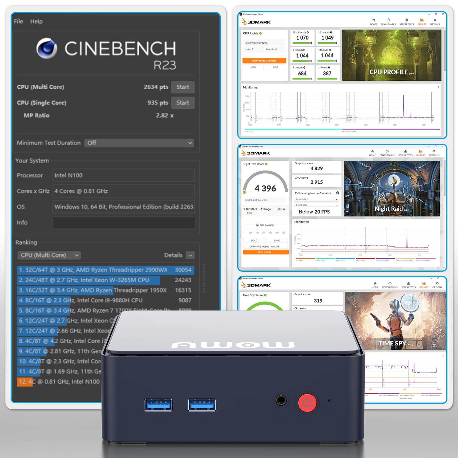 • 12. Gen Alder Lake-N100: Der AWOW AK10 Pro Mini-PC ist mit einem 12. Gen Alder Lake-N100 Prozessor (4C/4T, bis zu 3,4GHz) ausgestattet und bietet eine 30%ige Leistungssteigerung im Vergleich zu den Modellen N5105 und N5095, and ist 50 % energieeffizienter als der Prozessor N97, höhere Leistung als N95. Sein kompaktes Design ermöglicht einfachen Transport und flexible Nutzung. Ideal für Büroarbeit, kommerzielle Anwendungen, 4K-Videowiedergabe, Heimkino, Schule Bildung, Design und als Geschenk geeignet.