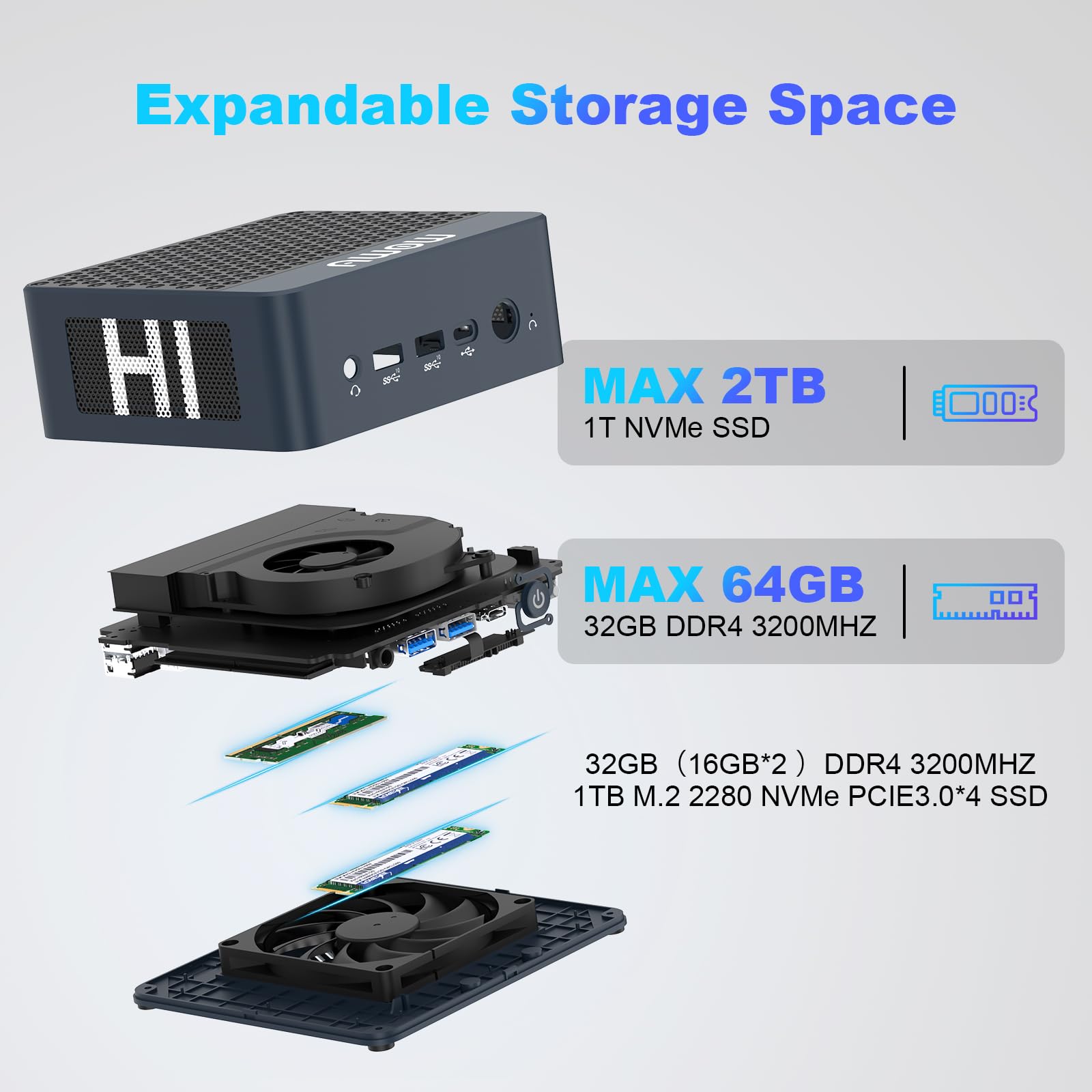 - 【Erweiterbare Kapazität】Der AWOW HI12 Mini PC verfügt über 16 GB DDR4-Speicher (bis zu 64 GB) + M.2 2280 512 GB PCIe 3.0 SSD-Speicher (bis zu 2 TB), sodass Sie problemlos Filme/Fotos von Digitalkameras speichern können, ohne befürchten zu müssen, dass Ihnen der Speicherplatz ausgeht