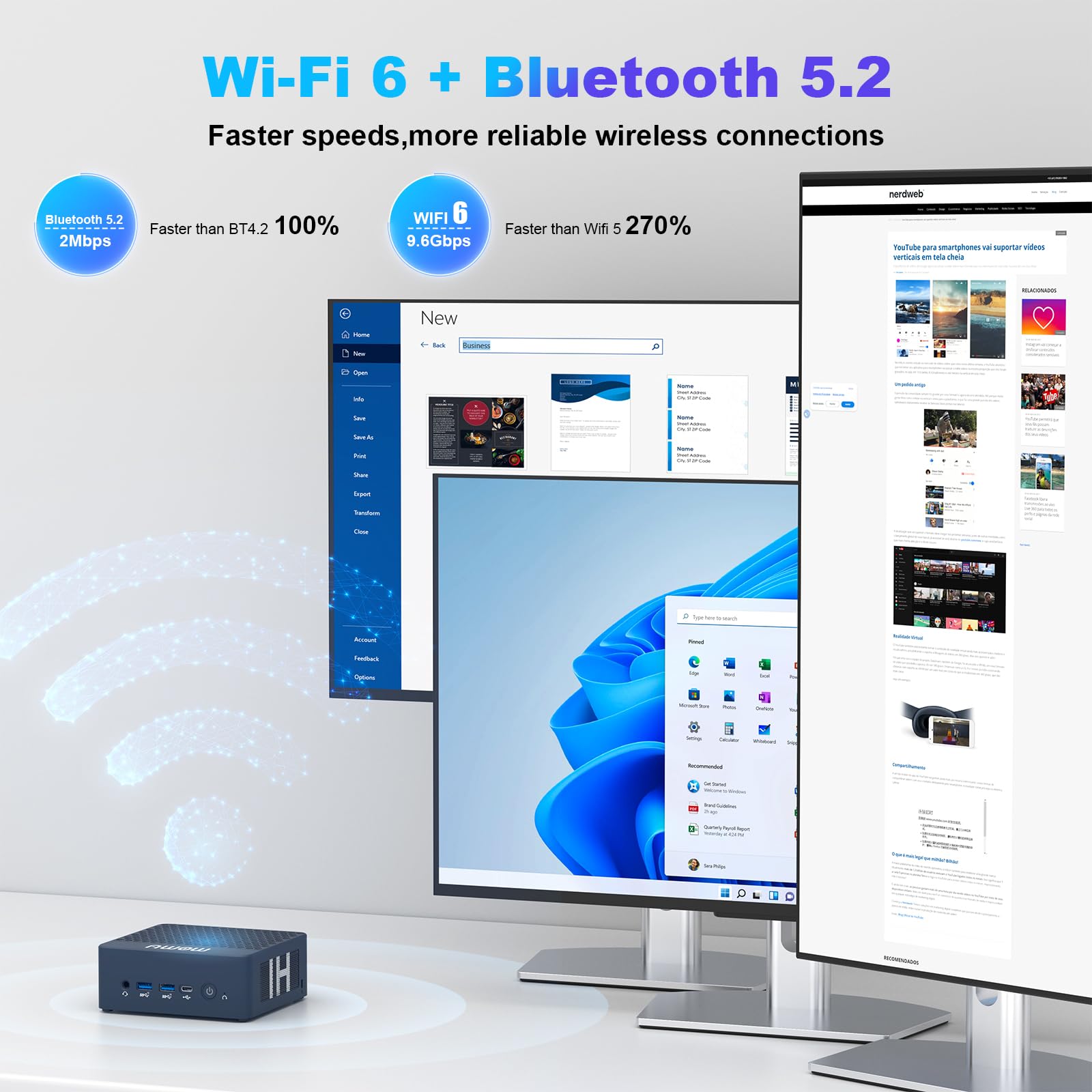 - 【Hervorragende Leistung】Der AWOW HI12 Mini PC ist mit einem Core i5-12600H-Prozessor (12 Kerne/16 Threads/bis zu 4,5 GHz) ausgestattet. Mit geeigneter Iris Xe-Grafik (Grafikfrequenz bis zu 1,40 GHz) bietet es eine hervorragende Leistung von Internet- und Büroanwendungen, Monitoren, Projekten und Fernsehern