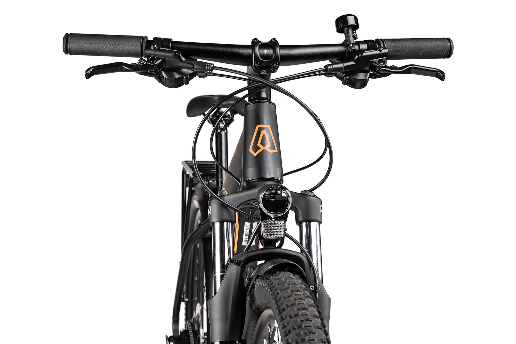Technische Details: Unisex All-Terrain-Mountainbike | Rahmenform: Diamant | Rahmenmaterial: Aluminium | Innenverlegte Züge | Schaltung: 16-Gang Kettenschaltung | Bremsen: Hydraulische Scheibenbremsen | Federgabel: 100 mm Federweg, einstellbar | Laufradgrößen: 27,5 oder 29 Zoll je nach Rahmengröße.