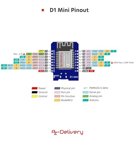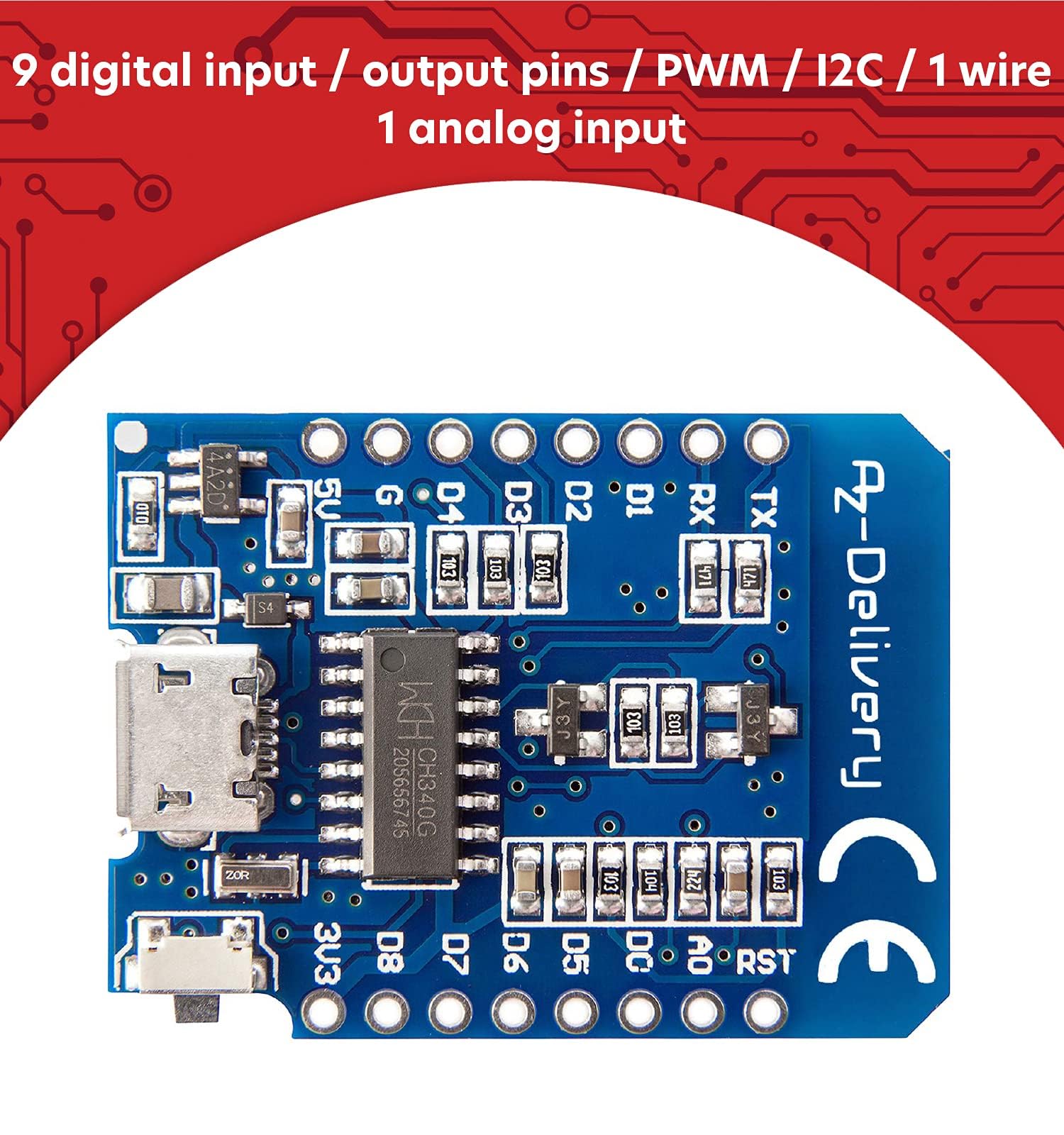 - ✅ Der AZ-Delivery D1 mini ist ein Mini-NodeMcu WiFi Board basierend auf einem ESP-8266-12F mit Micro-USB-Anschluss