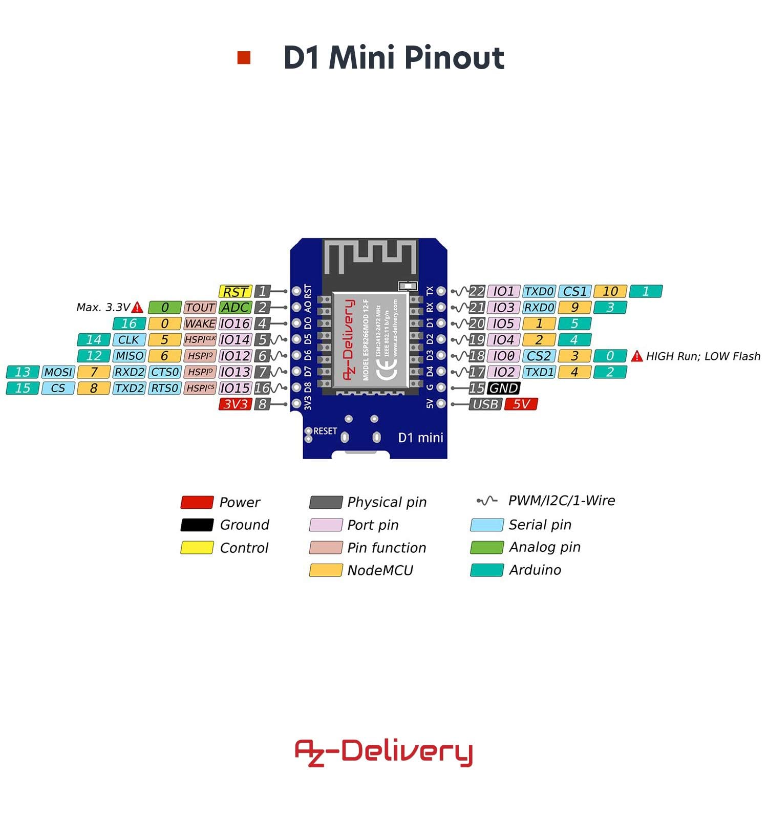 - ✅ Das AZ-Delivery drathloses D1 Mini Entwicklungsboard ist D1 Mini kompatibel und kann in der Arduino-IDE programmiert werden