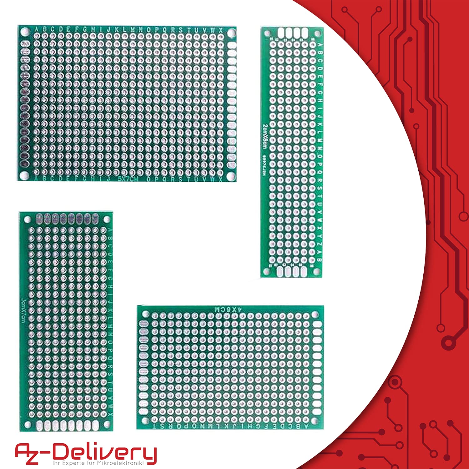 AZDelivery Set 16 x PCB Board Lochrasterplatte Lochrasterplatine Leiterplatte kompatibel mit Arduino inklusive E-Book!