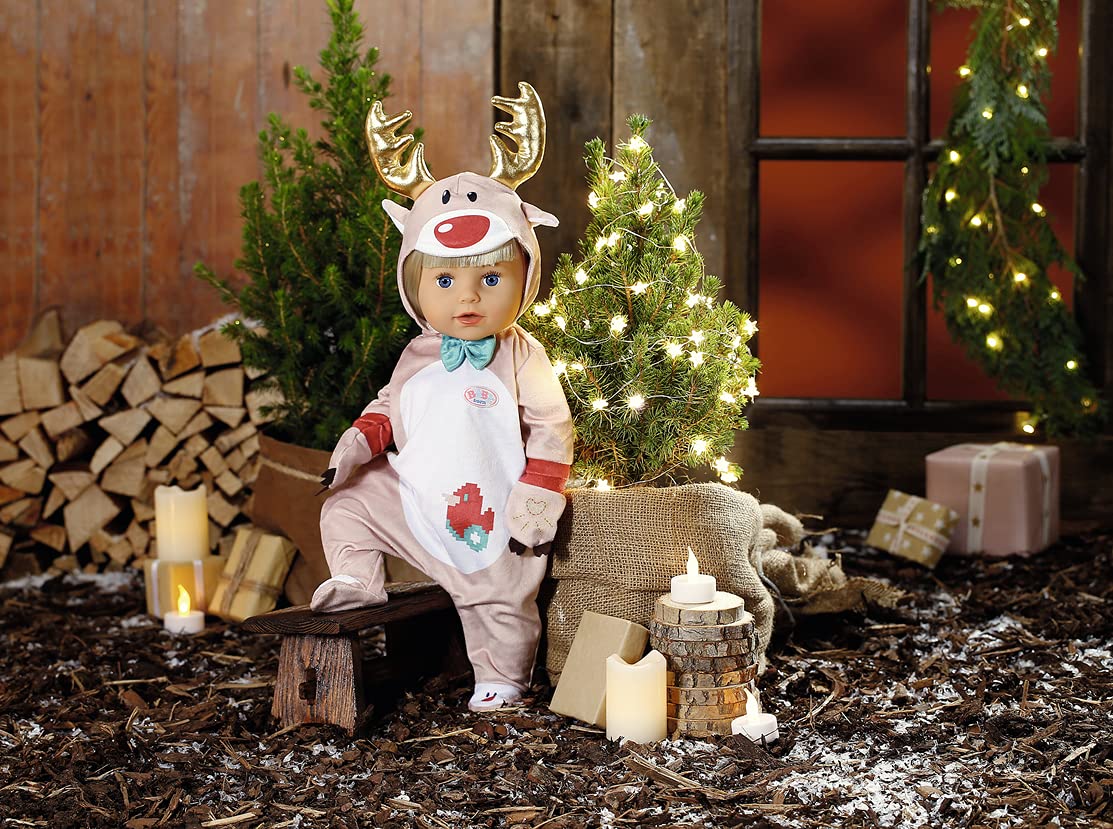 BABY born Rentier Onesie, Rentier-Kostüm für 43 cm Puppen, Einteiler mit Rentiergeweih und Handschuhen, 831700 Zapf Creation