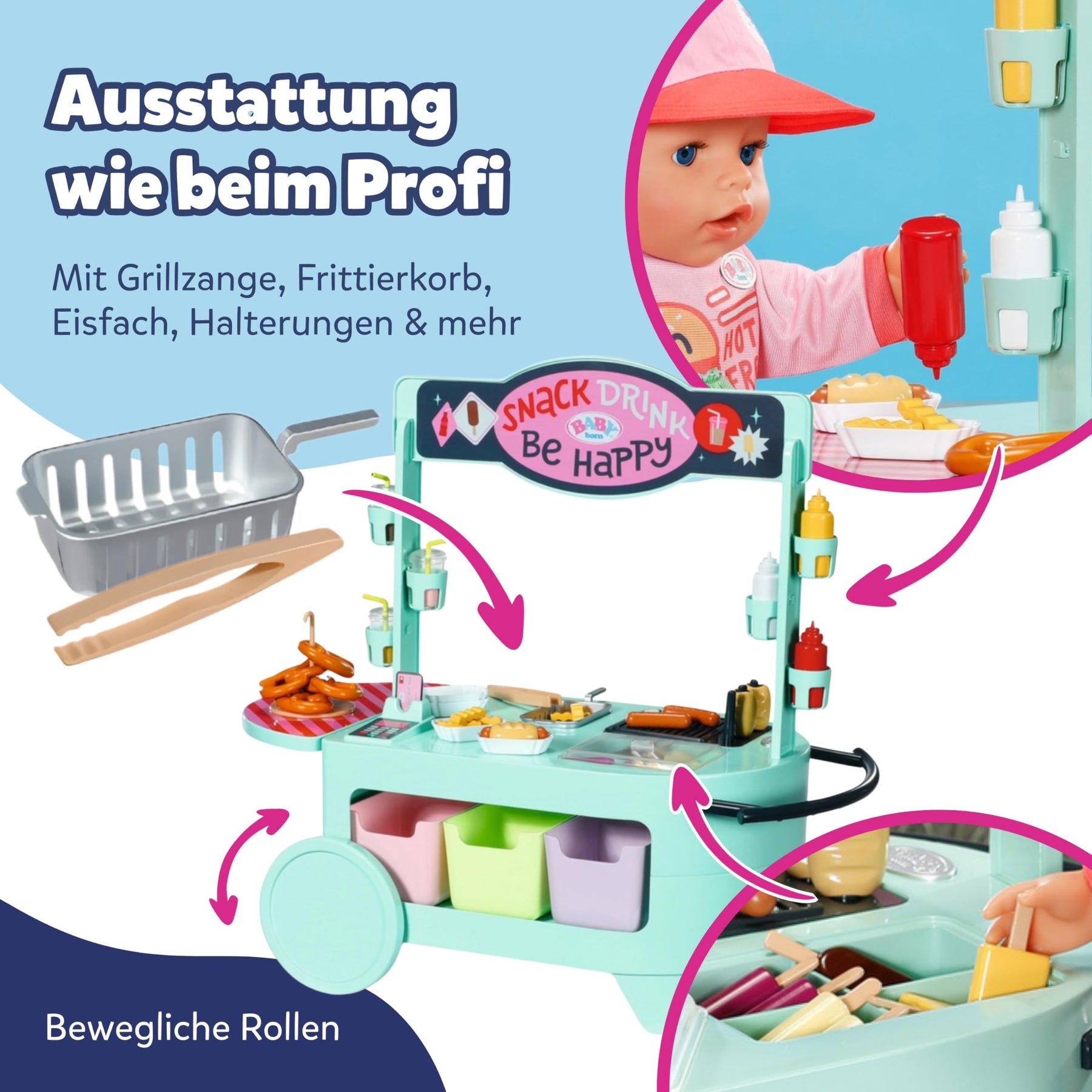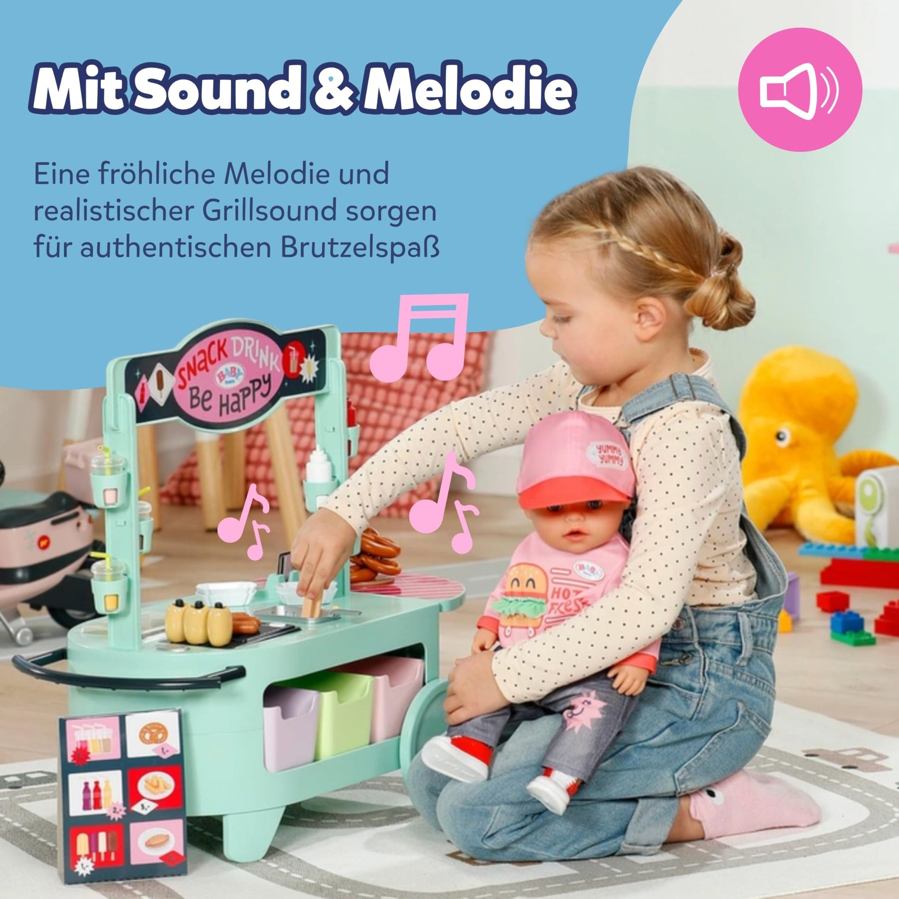 - MIT SOUND & MELODIE - Der BABY born Snack Shop spielt eine fröhliche Melodie & einen spannenden Grillsound zum authentischen Würstchen-Brutzeln.