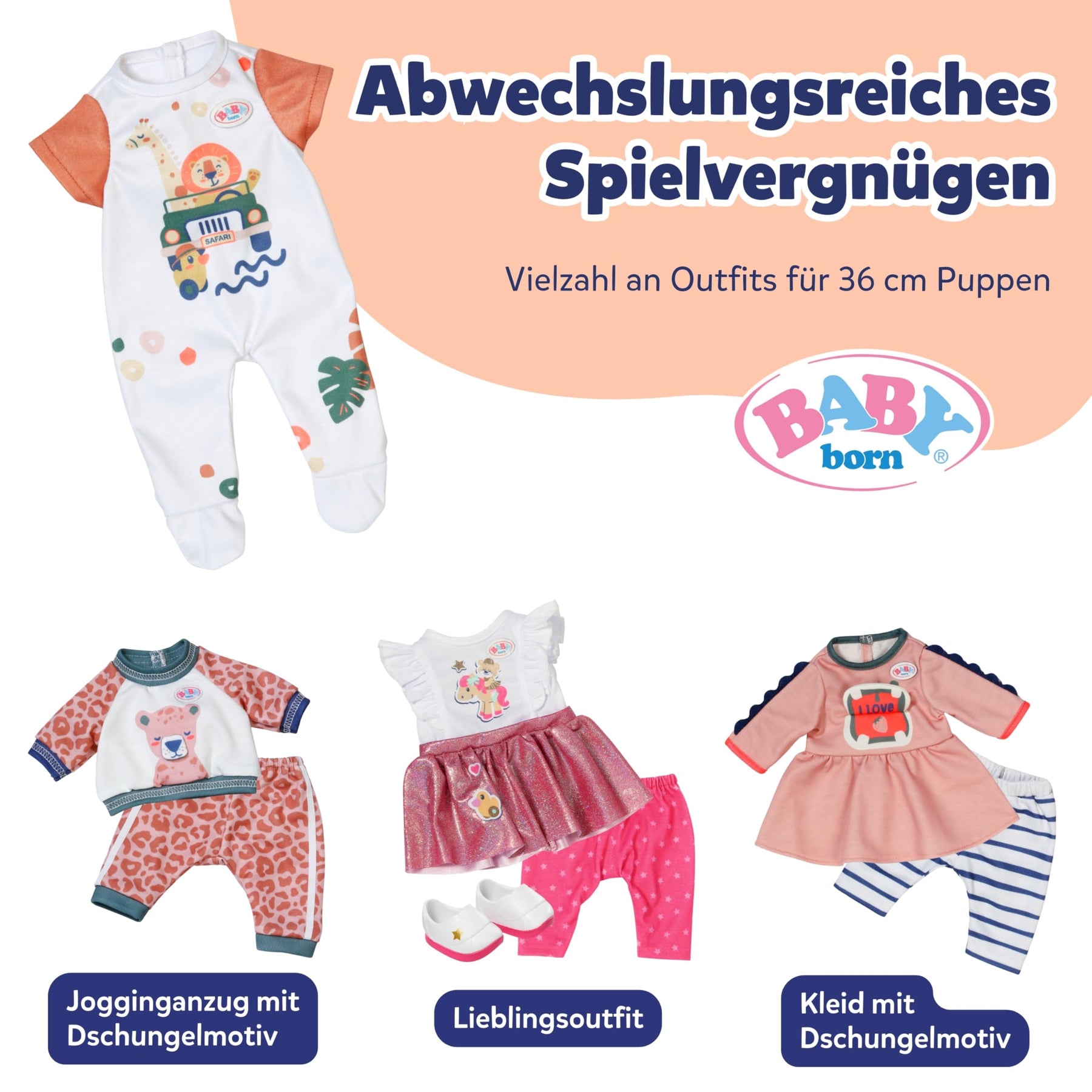 - HOCHWERTIGES ZUBEHÖR - Der BABY born Strampler im Dschungelmotiv ist der ideale Zuwachs für ein erweitertes, abwechslungsreiches & langanhaltendes Spielvergnügen.
