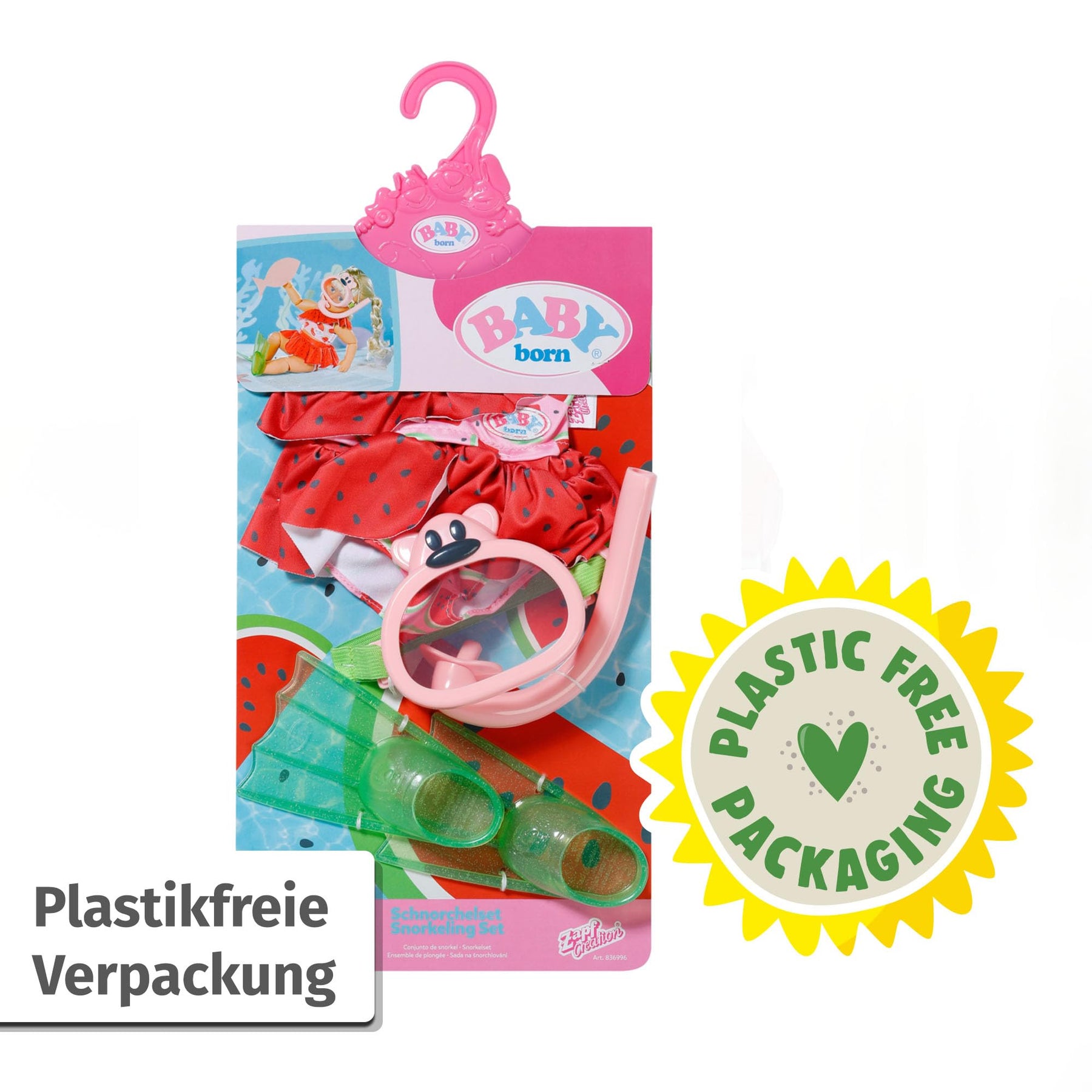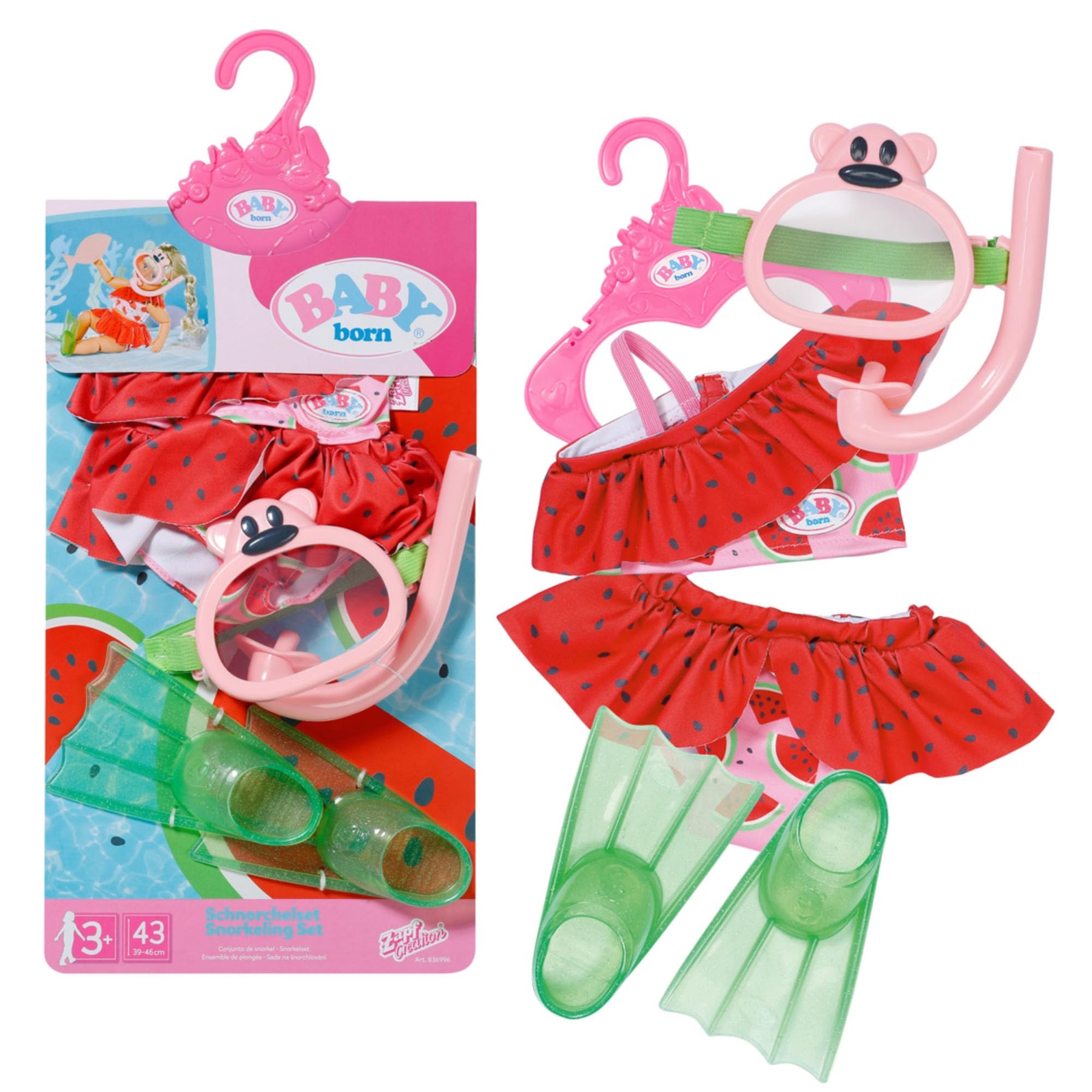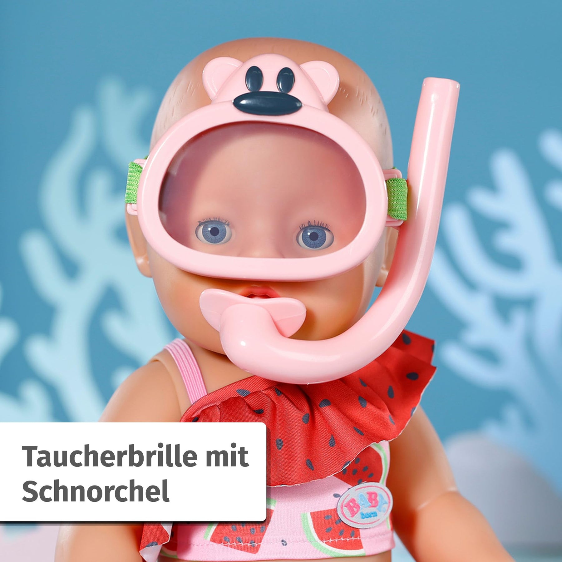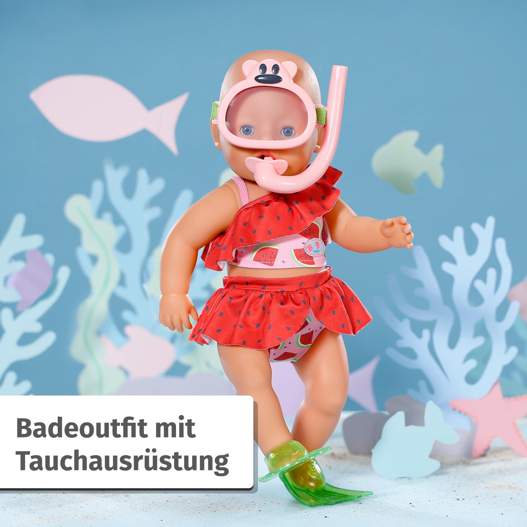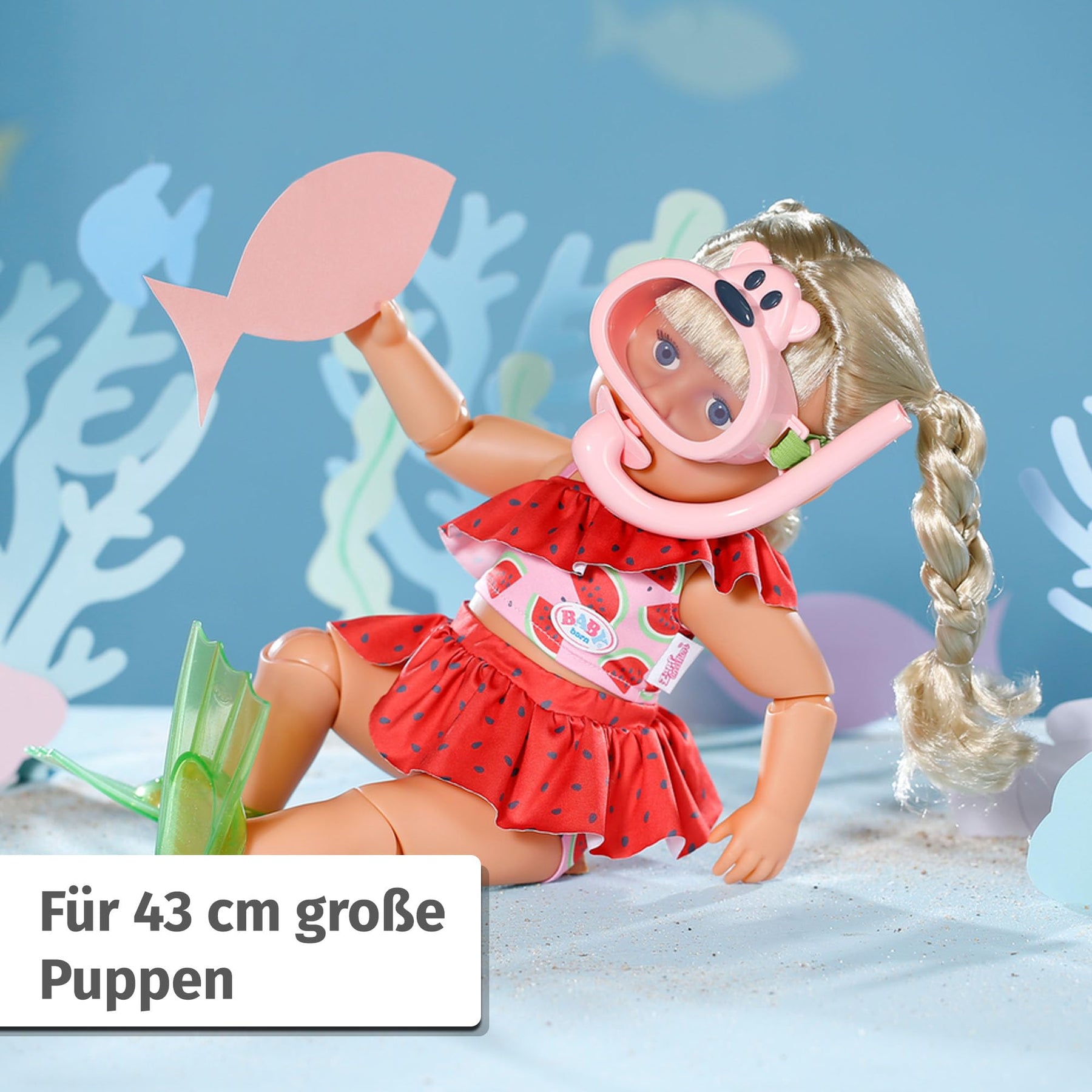 Abtauchen war noch nie so stylisch: Mit ihrem neuen Bikini, Taucherbrille mit Schnorchel und ihren Schwimmflossen erkundet BABY born die Welt unter Wasser. Wie spannend!