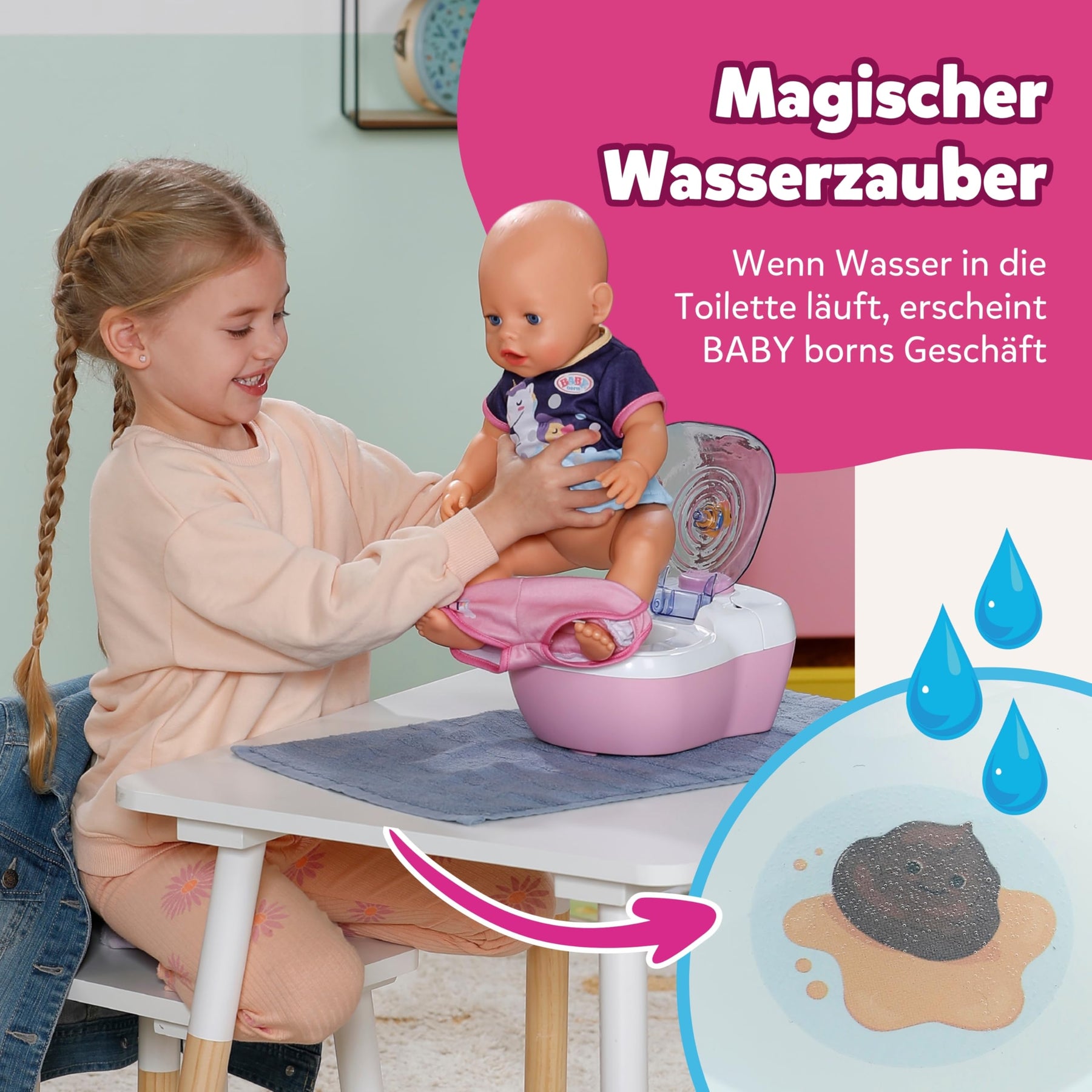 - MAGISCHER WASSERZAUBER - Wird Wasser in die Toilette eingefüllt, erscheinen dort das kleine & großes Geschäft - für besonders realitätsnahes Spiel.