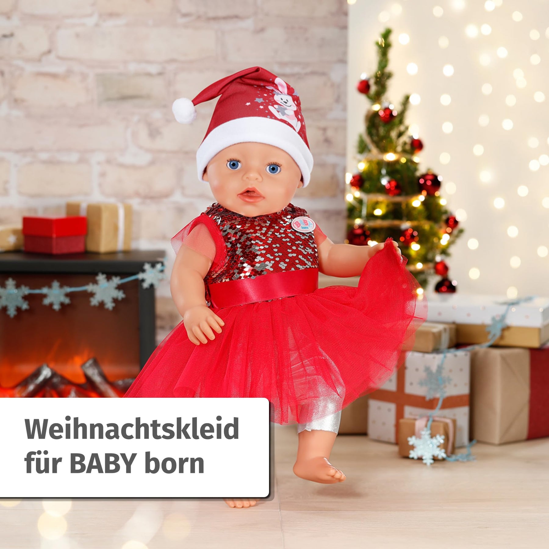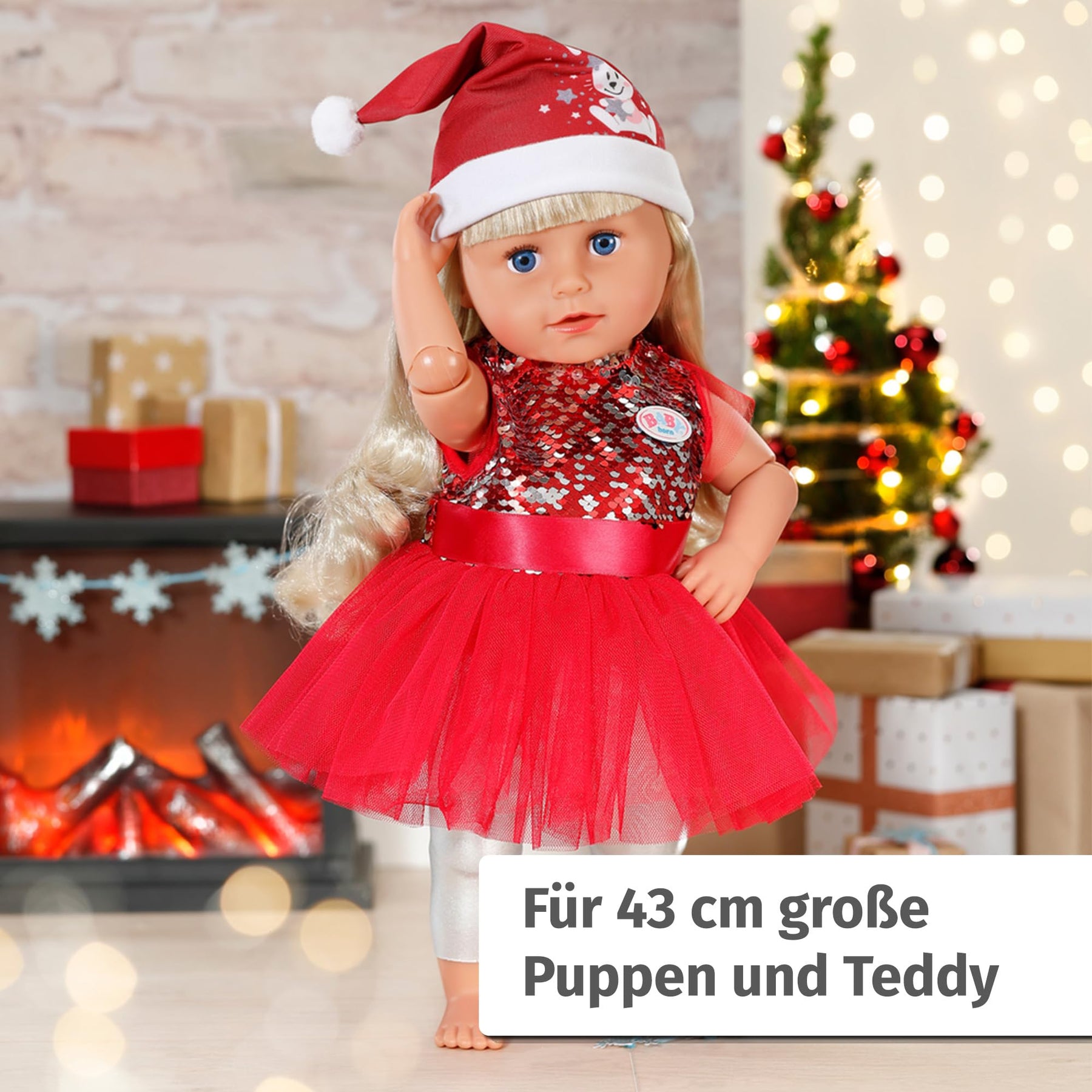 - FESTLICH GEKLEIDET: Mit dem BABY born Weihnachtskleid mit Leggings und Weihnachtsmütze.