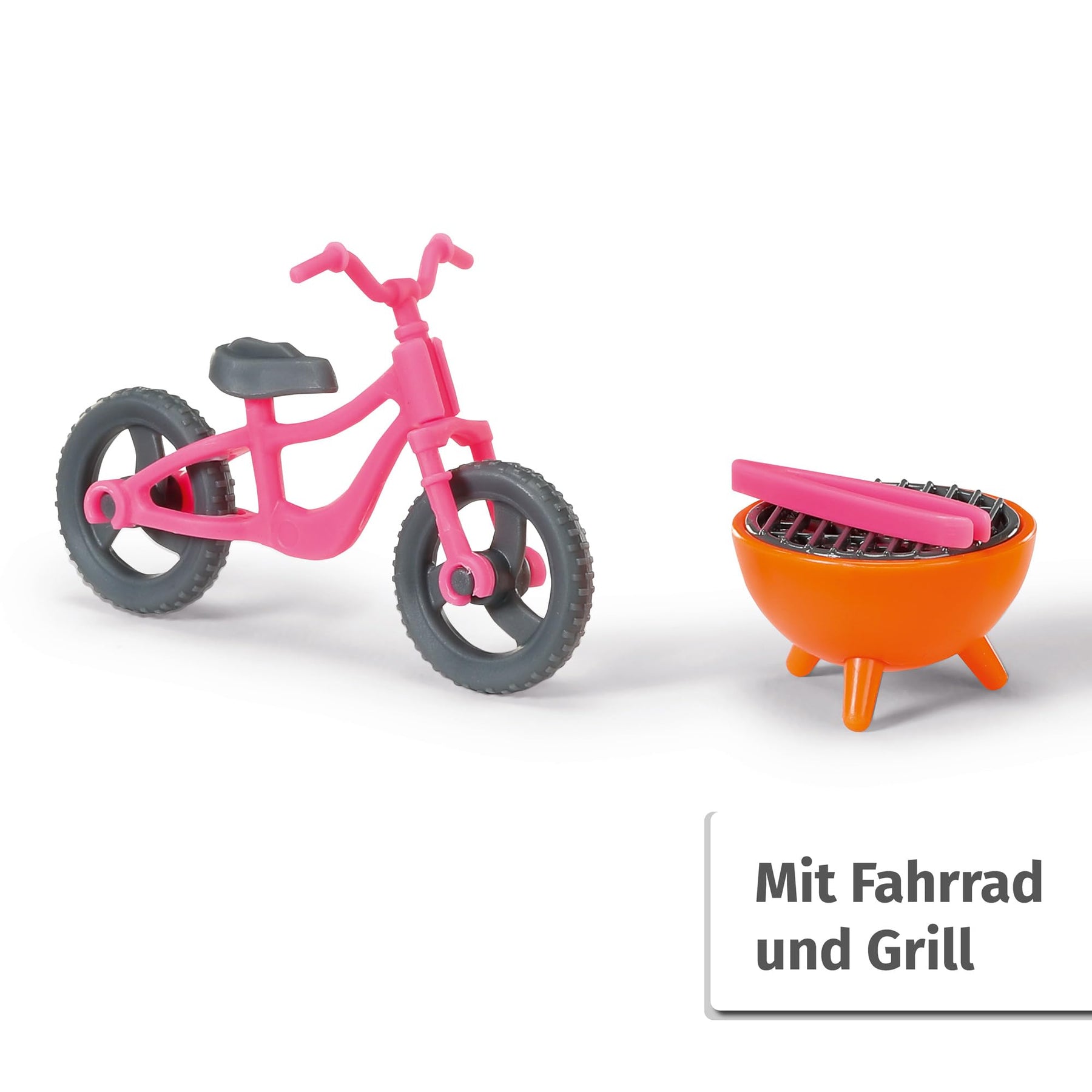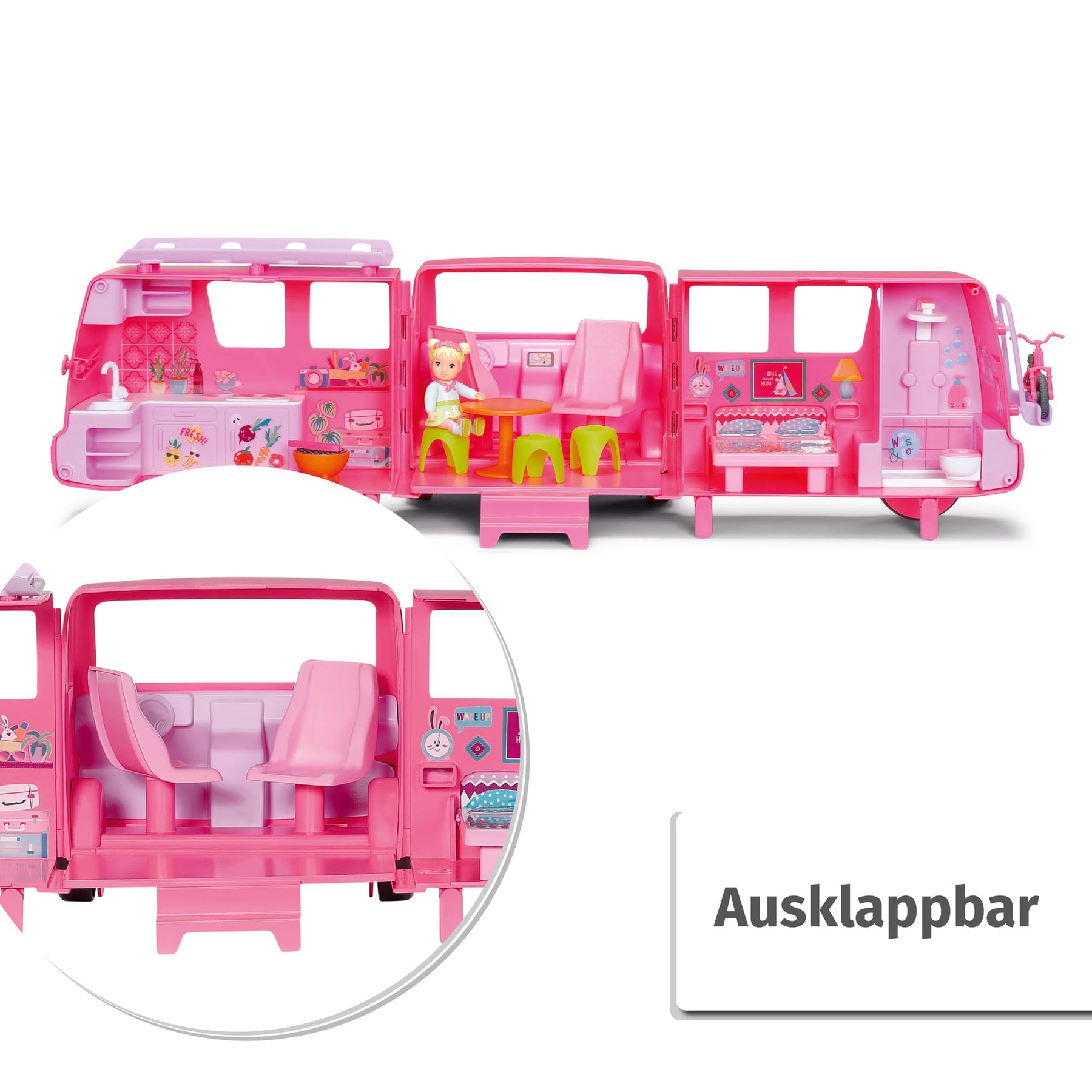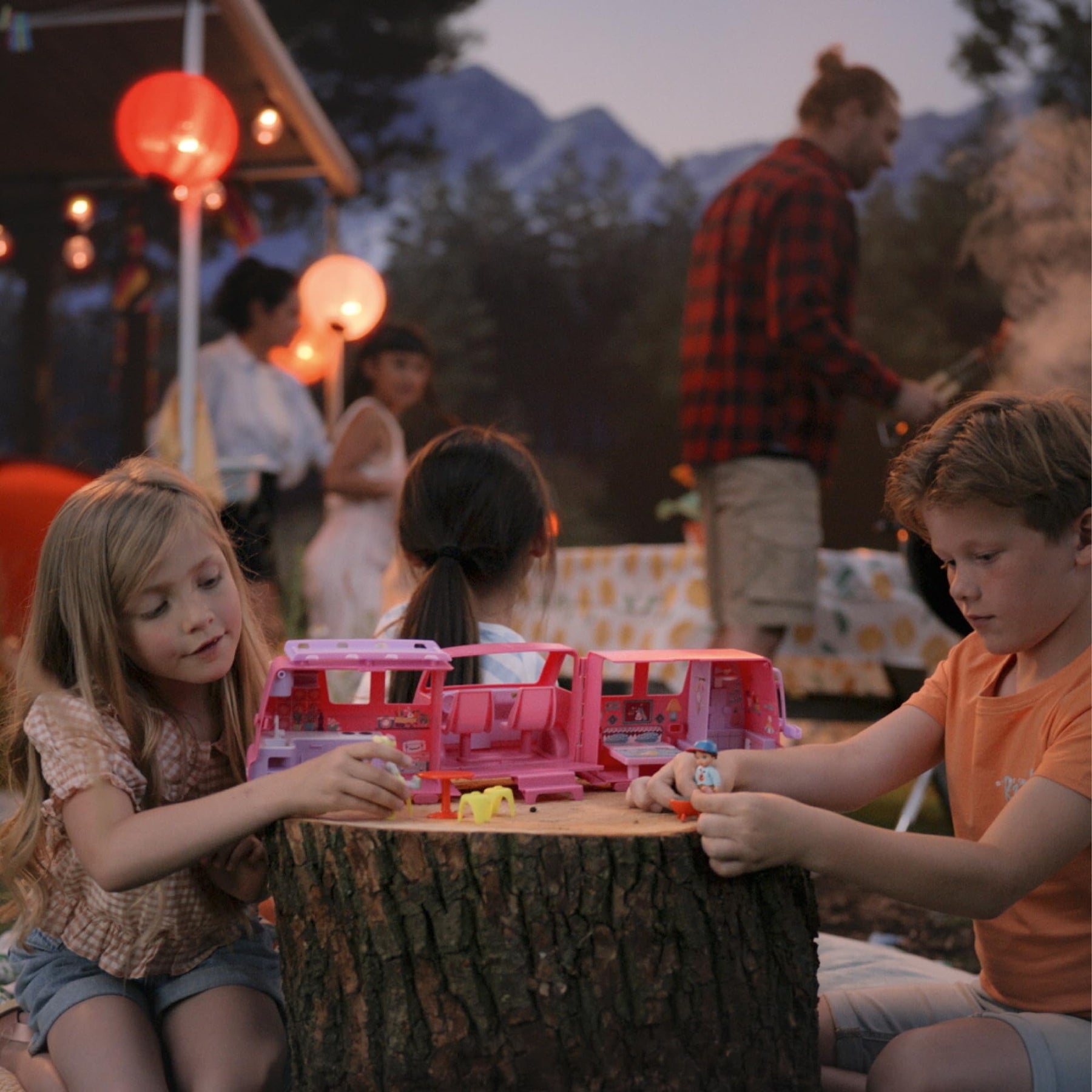 Jasmin liebt es, mit ihrem Campervan auf Reisen zu sein. Mit dem voll ausgestatteten Bus kann sie überall dort übernachten, wo es ihr gerade gefällt. Der knallpinke Van verfügt über eine Küche, ein Doppelbett und sogar ein voll ausgestattetes Puppenbadezimmer im Inneren. Als Extra gibt es auch noch drei Campingstühle, einen Tisch, ein Fahrrad und einen Grill, die alle im aufklappbaren Camper Platz finden. • BABY born Minis Campervan • Inkl. BABY born Minis Puppe Jasmin und vielen Accessories • Campervan kann mit Aufklebern dekoriert werden