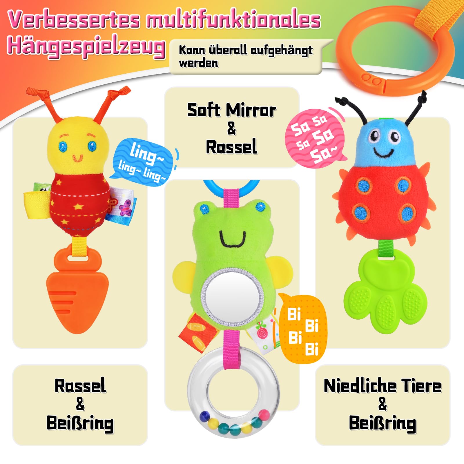 - Sicheres Spielzeug für Kinderbetten : Hängende Kinderwagen-Spielzeuge bestehen aus weichem und sicherem Stoffmaterial, ungiftig, BPA-frei, ohne fluoreszierende Zusätze, keine Reizung der Haut des Babys, Sicherheit für das Baby