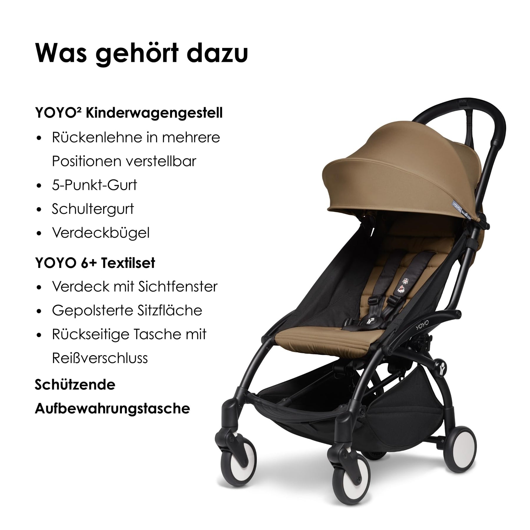 • KINDERWAGENGESTELL - Das YOYO2 Kinderwagengestell wird mit 5-Punkt-Gurt, verstellbarer Rückenlehne, gepolstertem Schultergurt, Verdeckbügel, und schützender Aufbewahrungstasche geliefert.