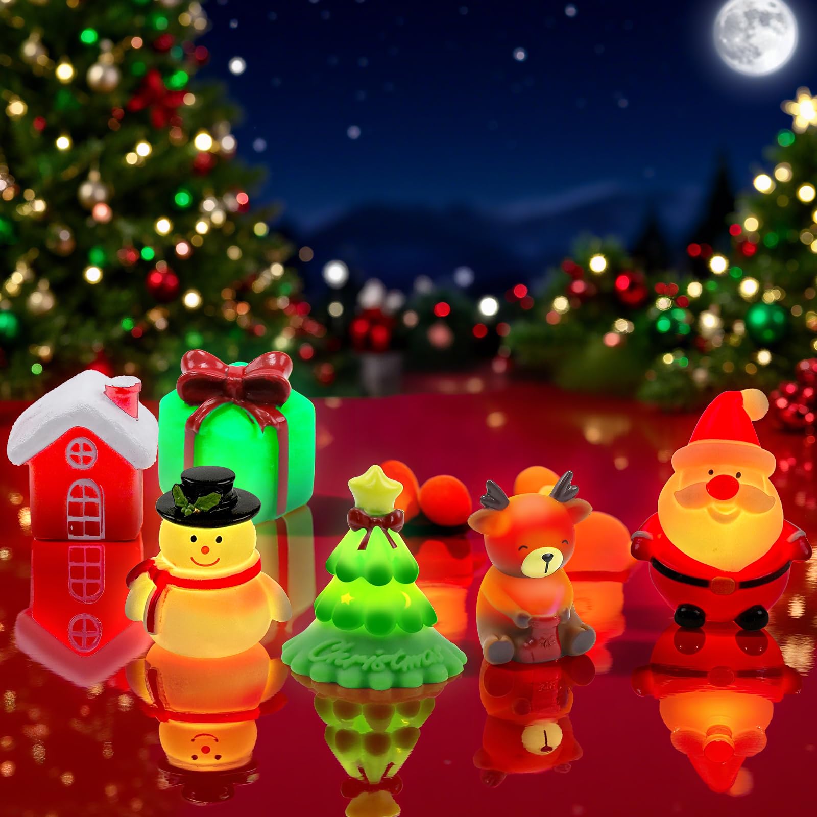 6 × Leuchtende Badespielzeuge mit Weihnachtsmotiven: Weihnachtsmann, Schneemann, Rentier, Geschenk, Tannenbaum, Häuschen